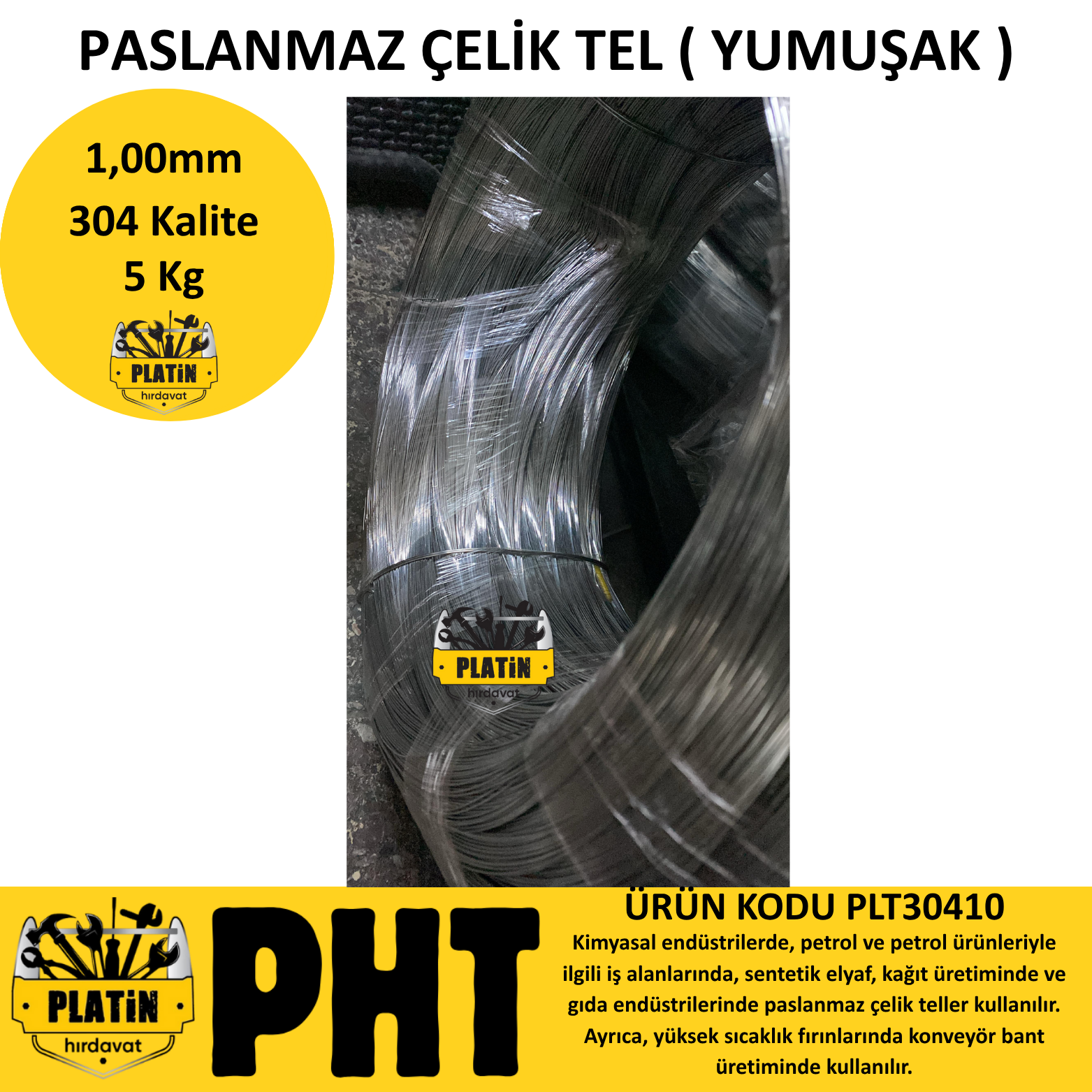 304 Kalite Paslanmaz Çelik Tel 1,00mm ( Yumuşak Parlak ) 5 Kg