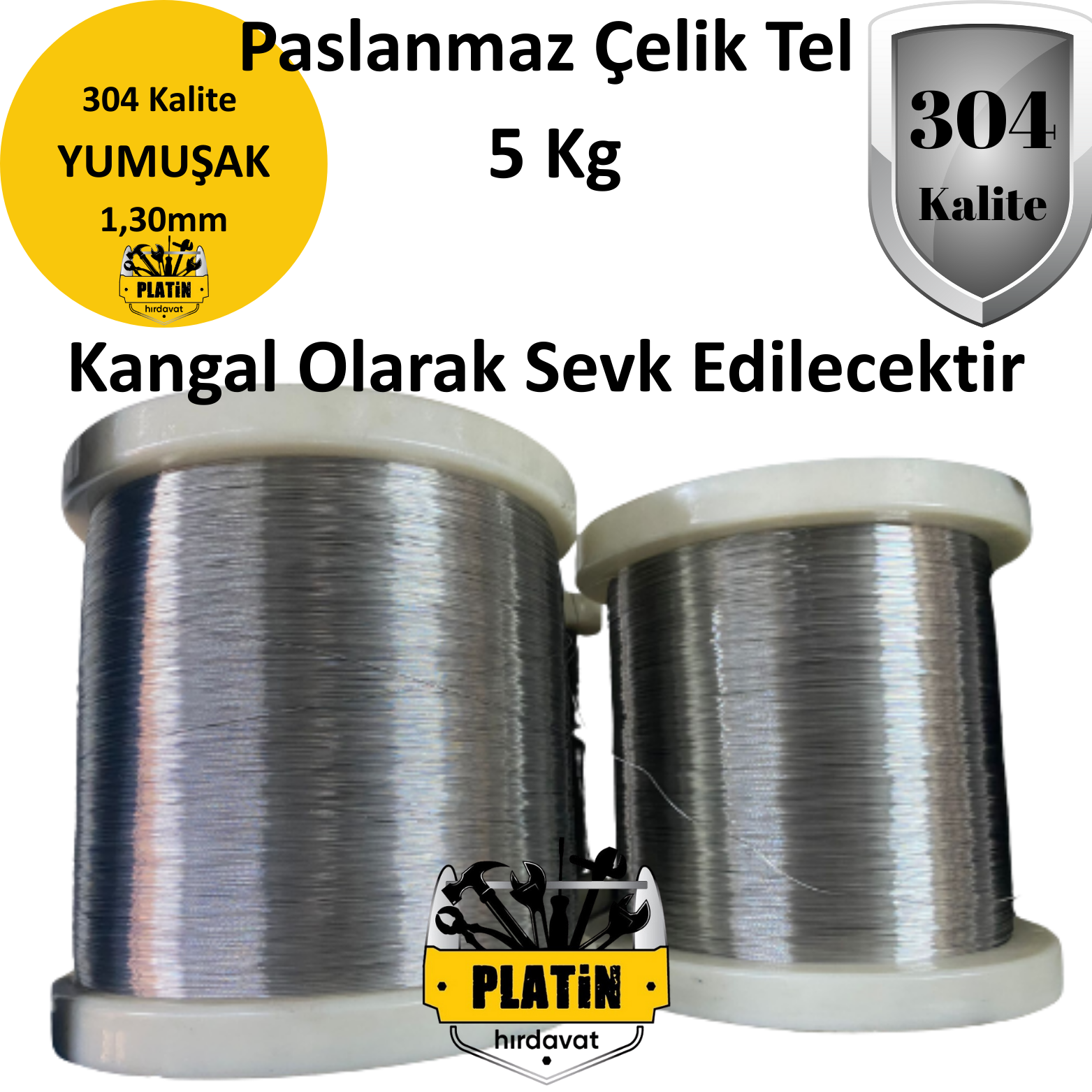 304 Kalite Paslanmaz Çelik Tel 1,30mm ( Yumuşak Parlak ) 5 Kg
