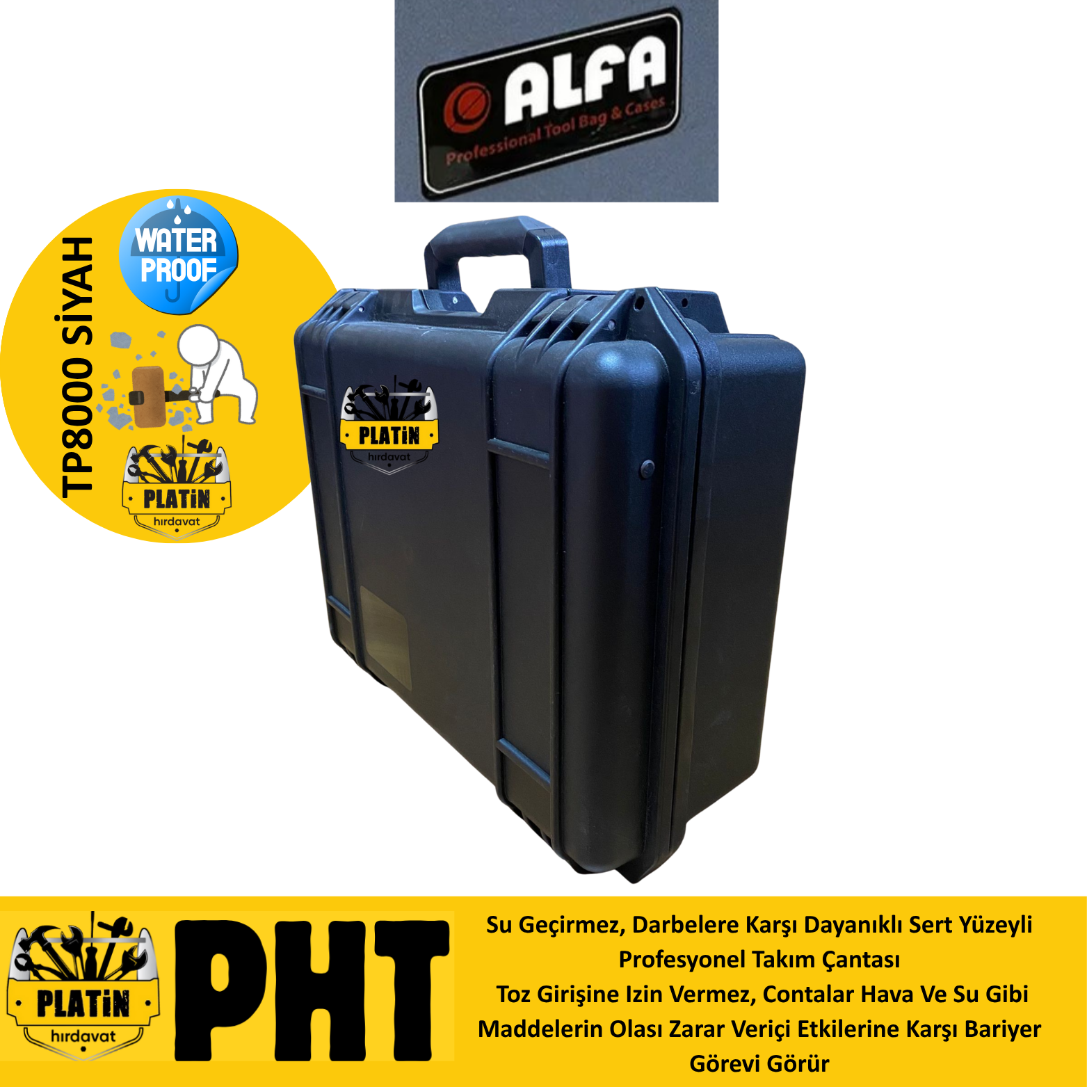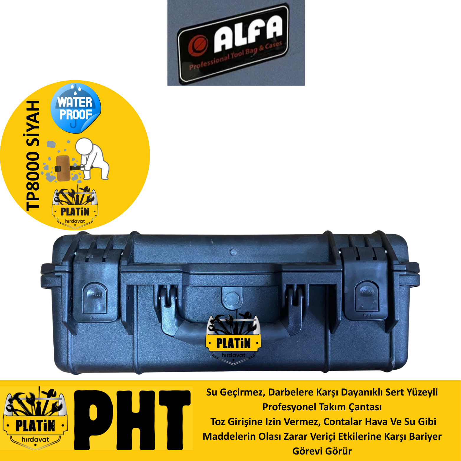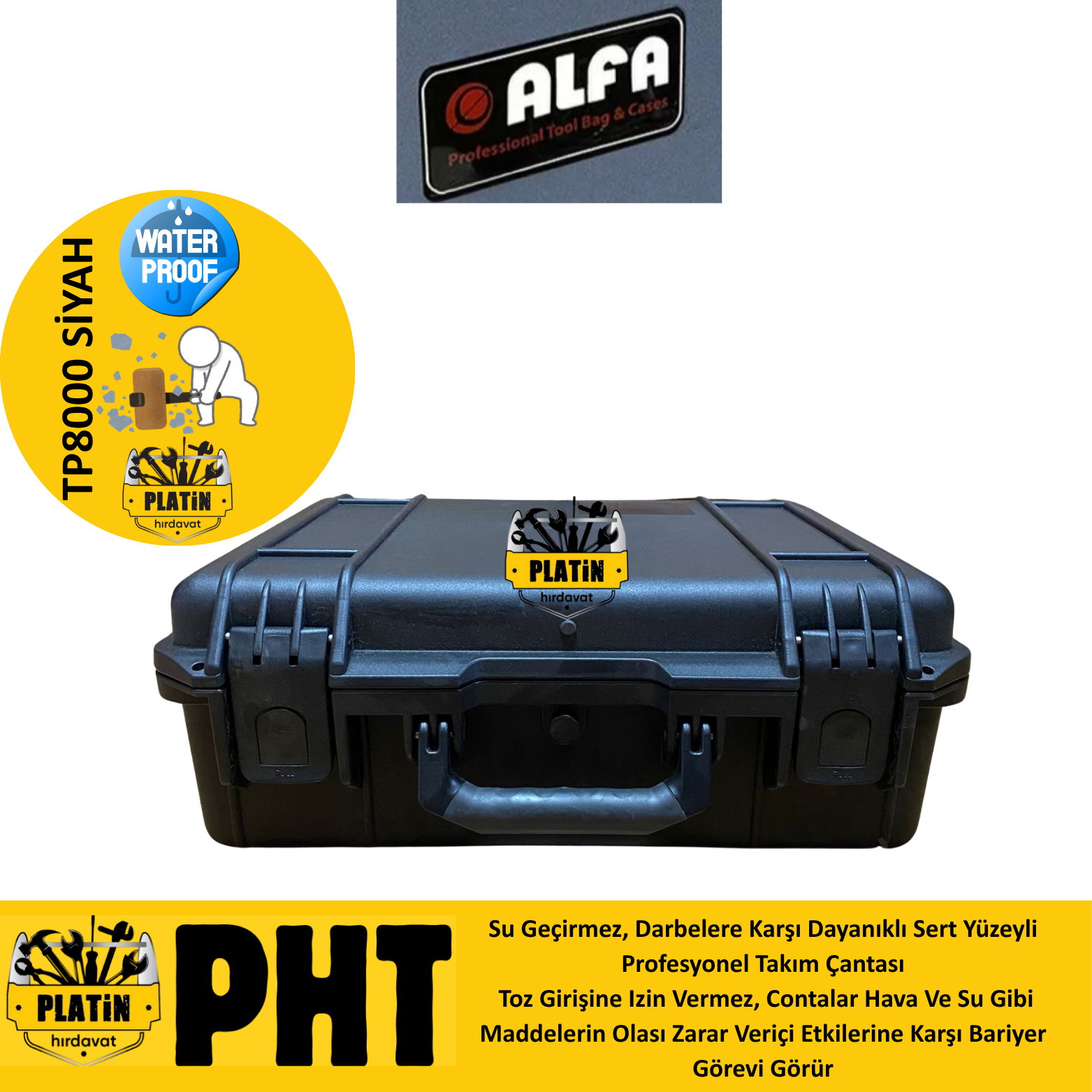 Alfa Takım TP-8000 Çantası Kırılmaz Su Geçirmez Siyah