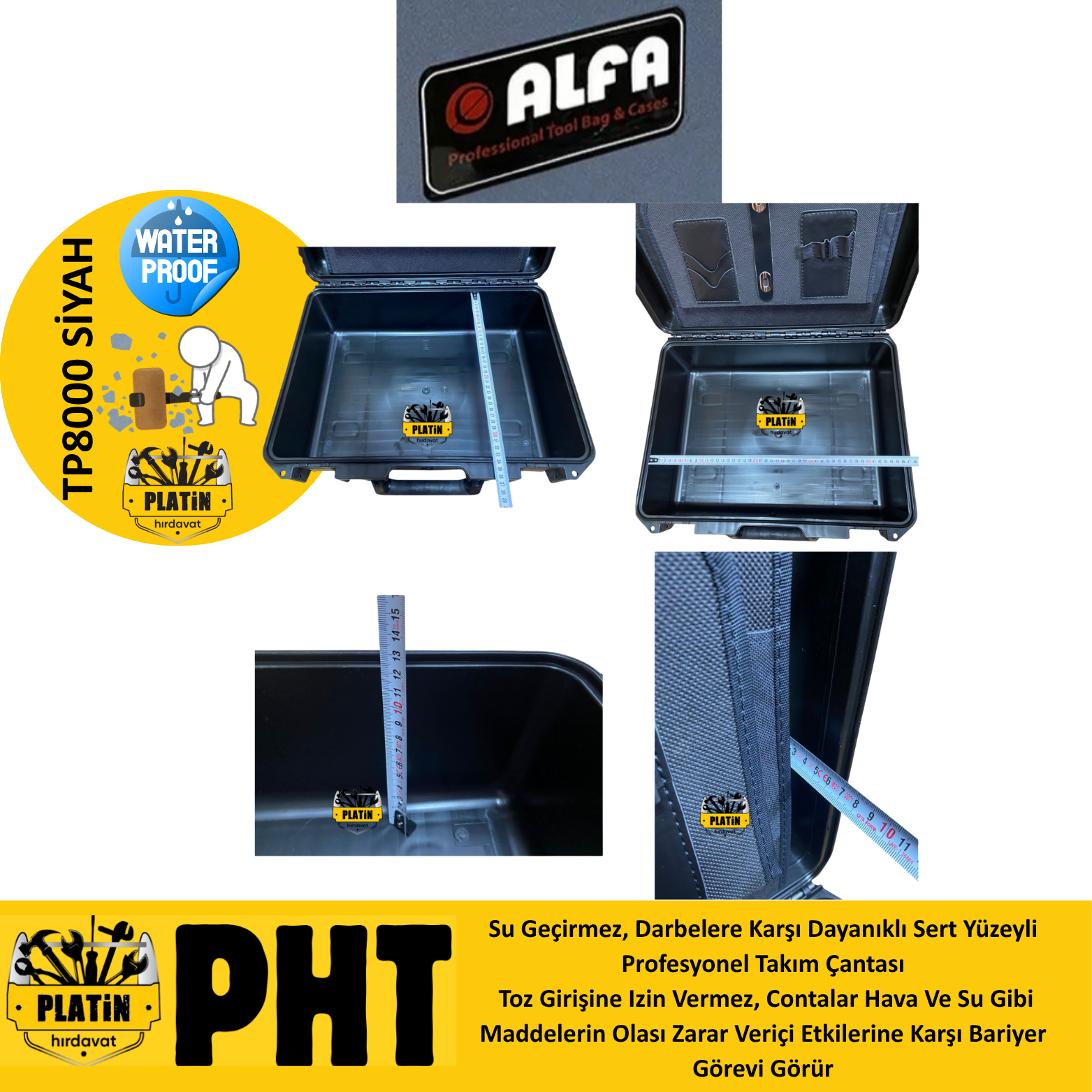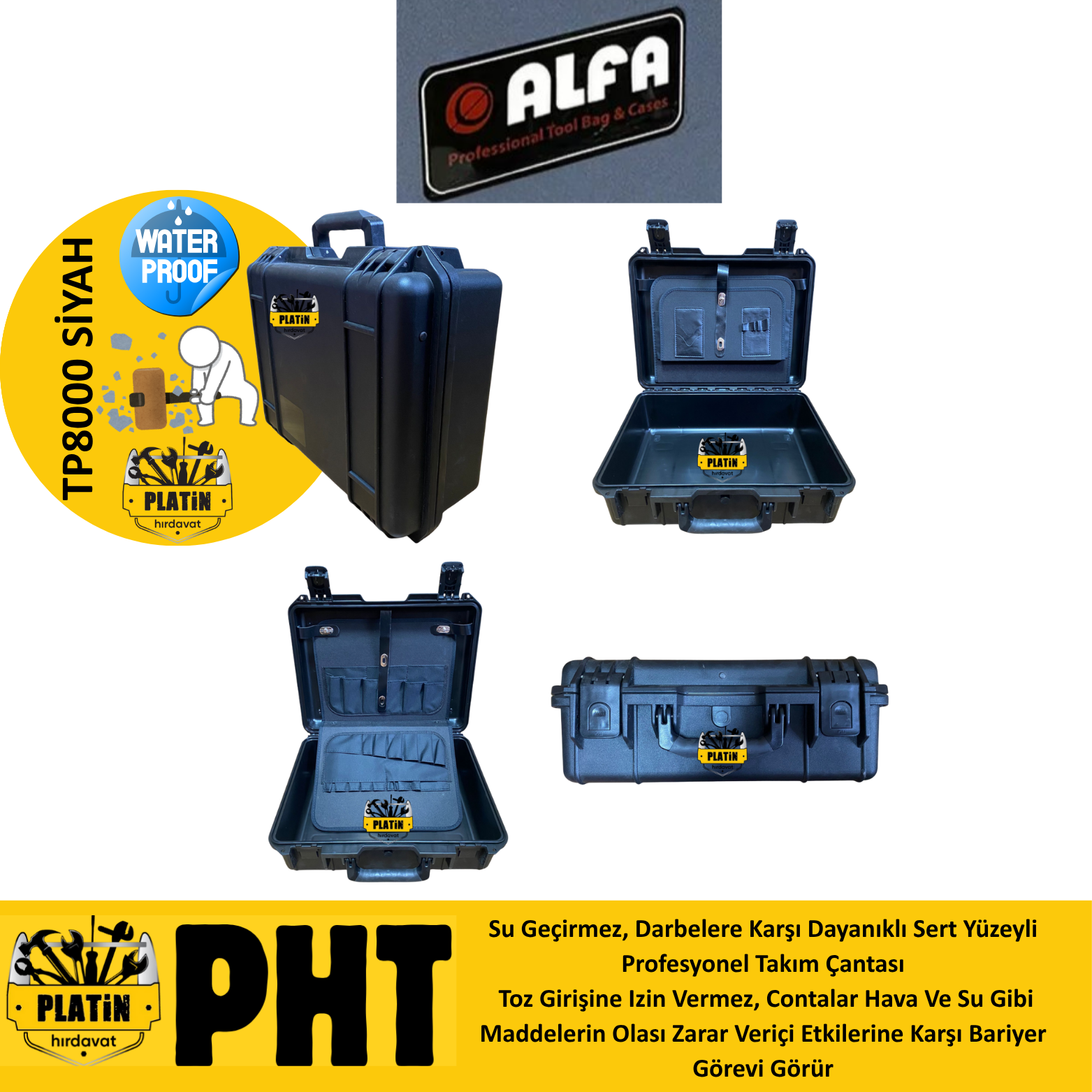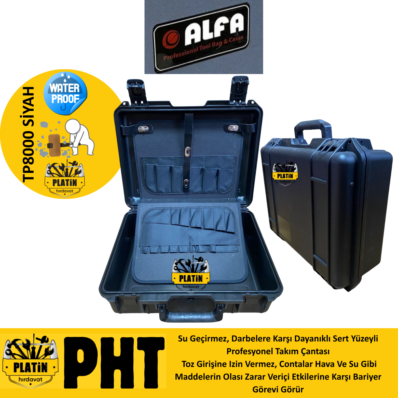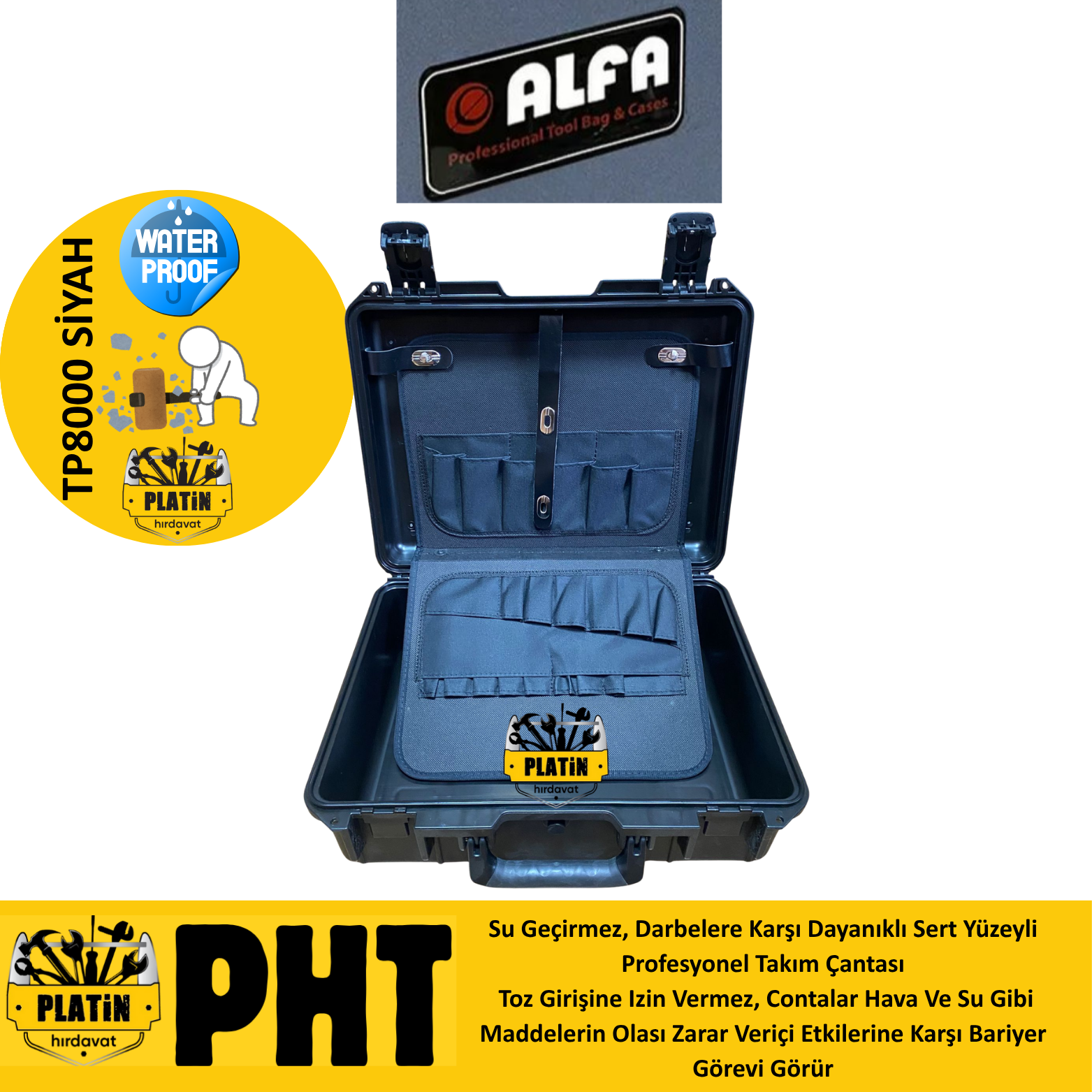 Alfa Takım TP-8000 Çantası Kırılmaz Su Geçirmez Siyah