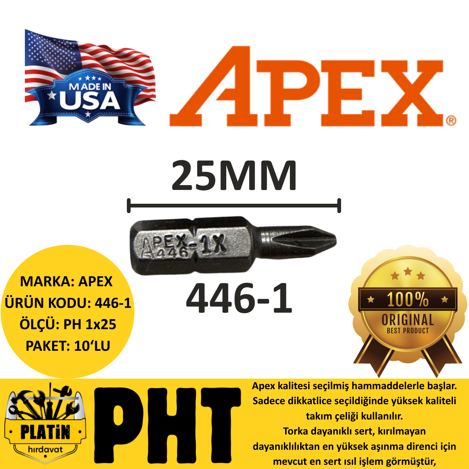 Apex 446-1 Ph 1x25 Yıldız uç Bits 1/4"- 6 Köşe Arkalı Yıldız Uç ( 10 Adet )