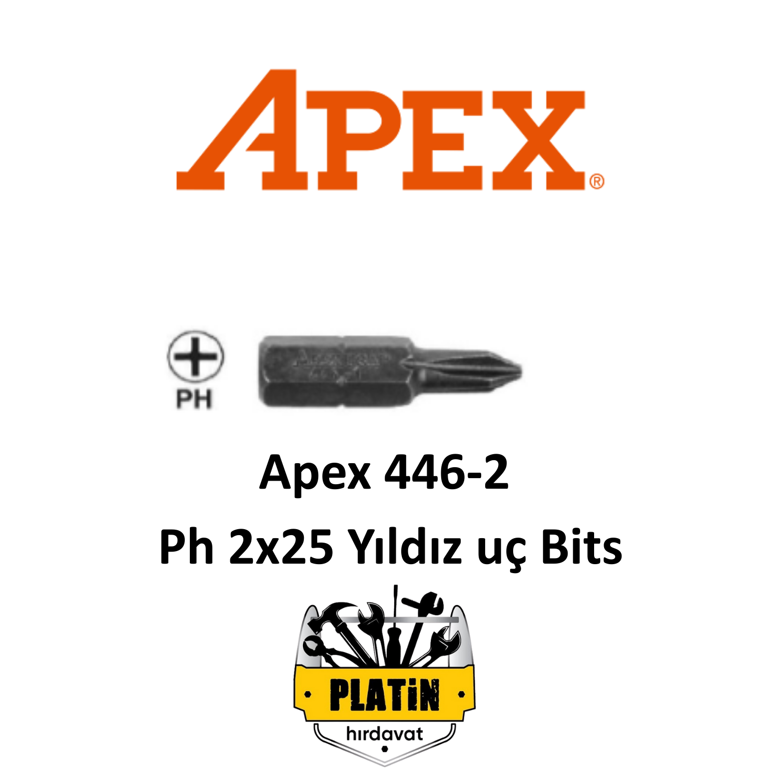 Apex 446-2 Ph 2x25 Yıldız uç Bits 1/4"- 6 Köşe Arkalı Yıldız Uç