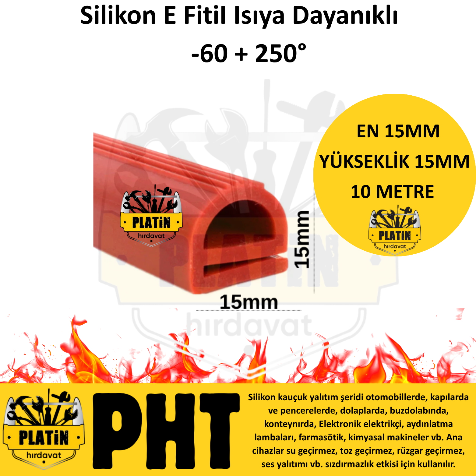 PHT Ars Isıya Dayanıklı Silikon Fırın Cam Contası E Fitili Cam Genişlik 15mm Yükseklik 15mm ( 10 Metre ) plt28000225