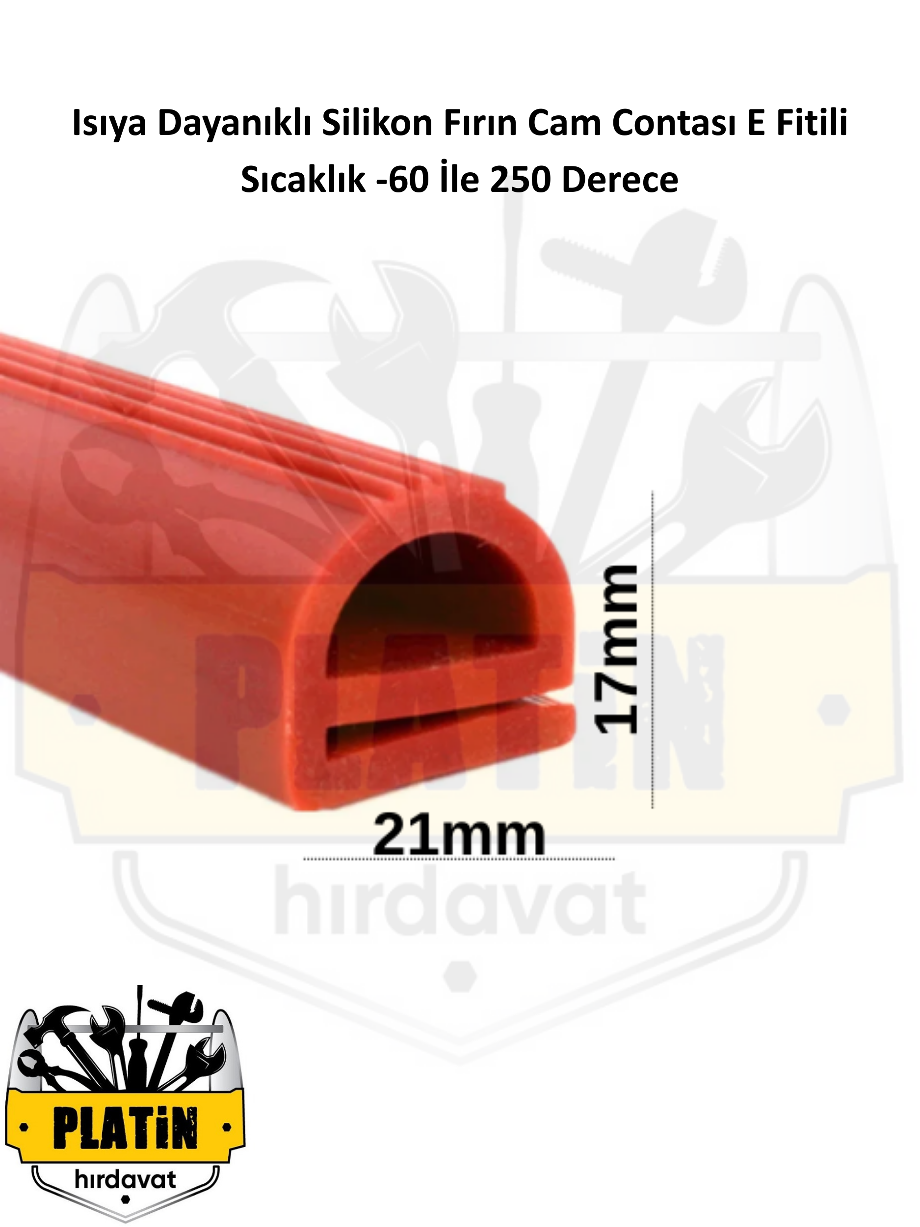 PHT Ars Isıya Dayanıklı Silikon Fırın Cam Contası E Fitili Cam Genişlik 21mm Yükseklik 17mm ( 10 Metre ) plt28000226
