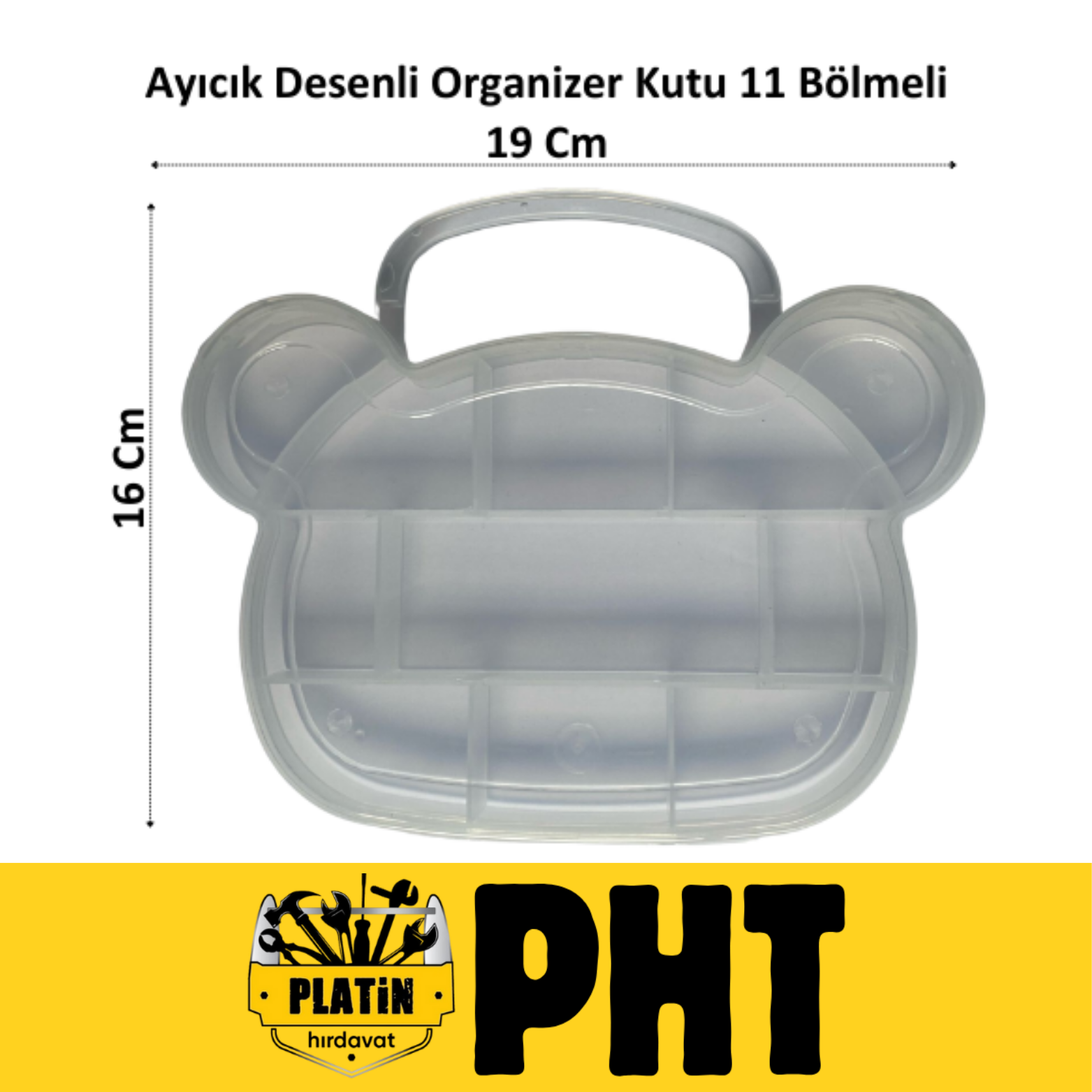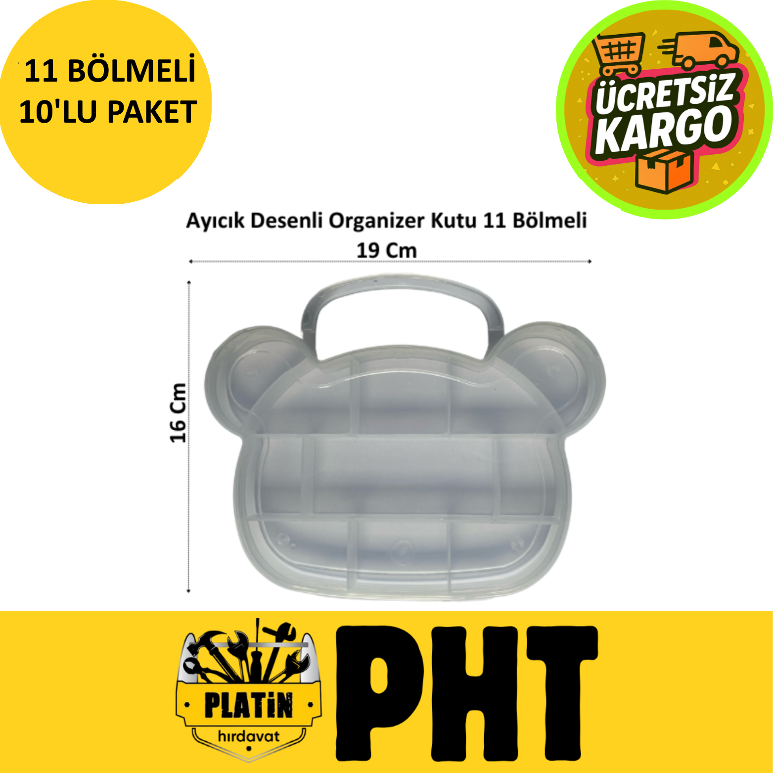 PHT Ayıcık Desenli Organizer Şeffaf Kutu Hobby, Takı, Boncuk, 11 Bölmeli plt2800011 ( 10 Adet )