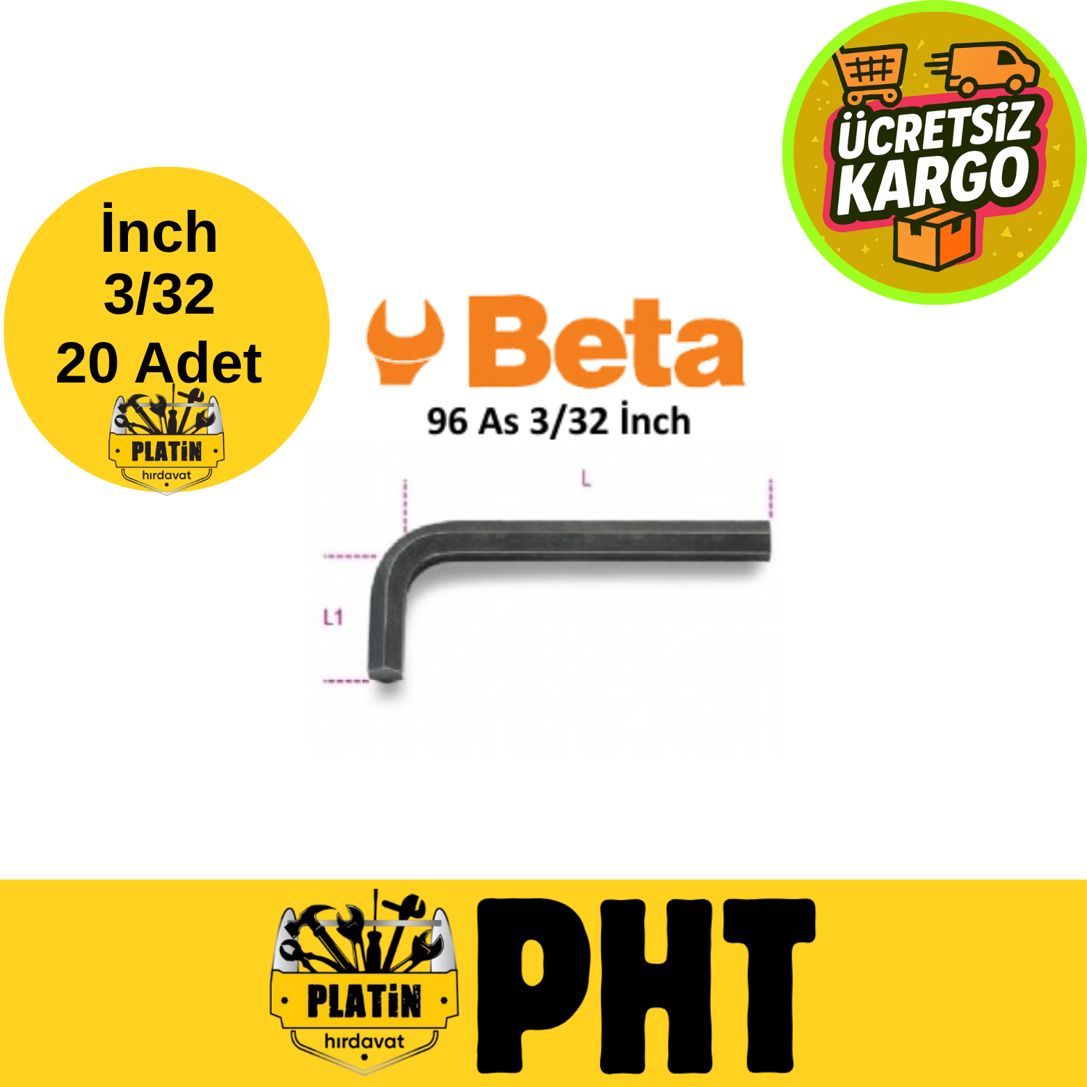 Beta 96AS İnç Allen Anahtar 3/32'' ( 20 Adet )