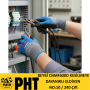 Tanım; Alt yüzeyi ¾ mavi nitril, dış yüzeyi ½ mikro köpük nitril kaplı HDPE örgü kesilmeye dirençli eldiven.