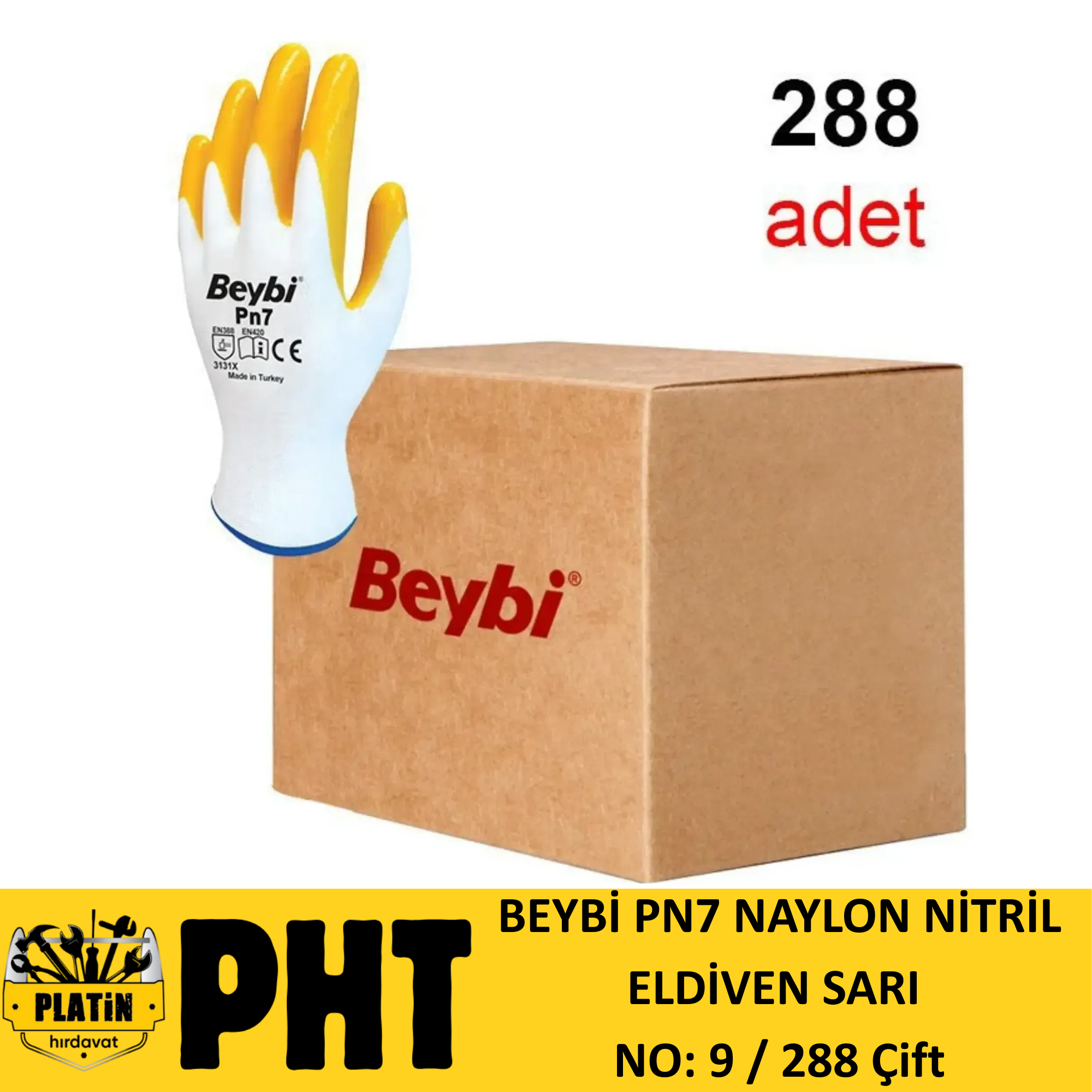 Beybi Naylon Nitril Eldiven No:9 ( 288 Çift ) PN7 Beyaz-Sarı