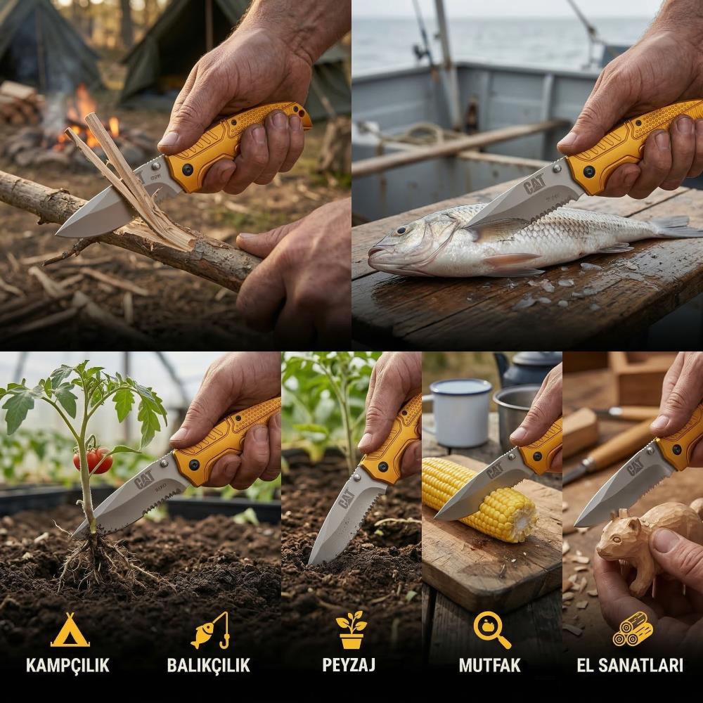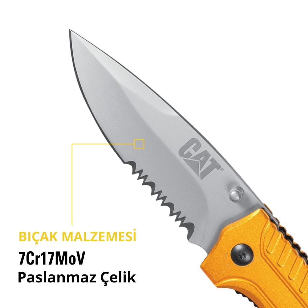 CAT DA980006 Kemer Askı Kancalı Katlanabilir 20CM Paslanmaz Çelik Sarı Kamp Çakısı