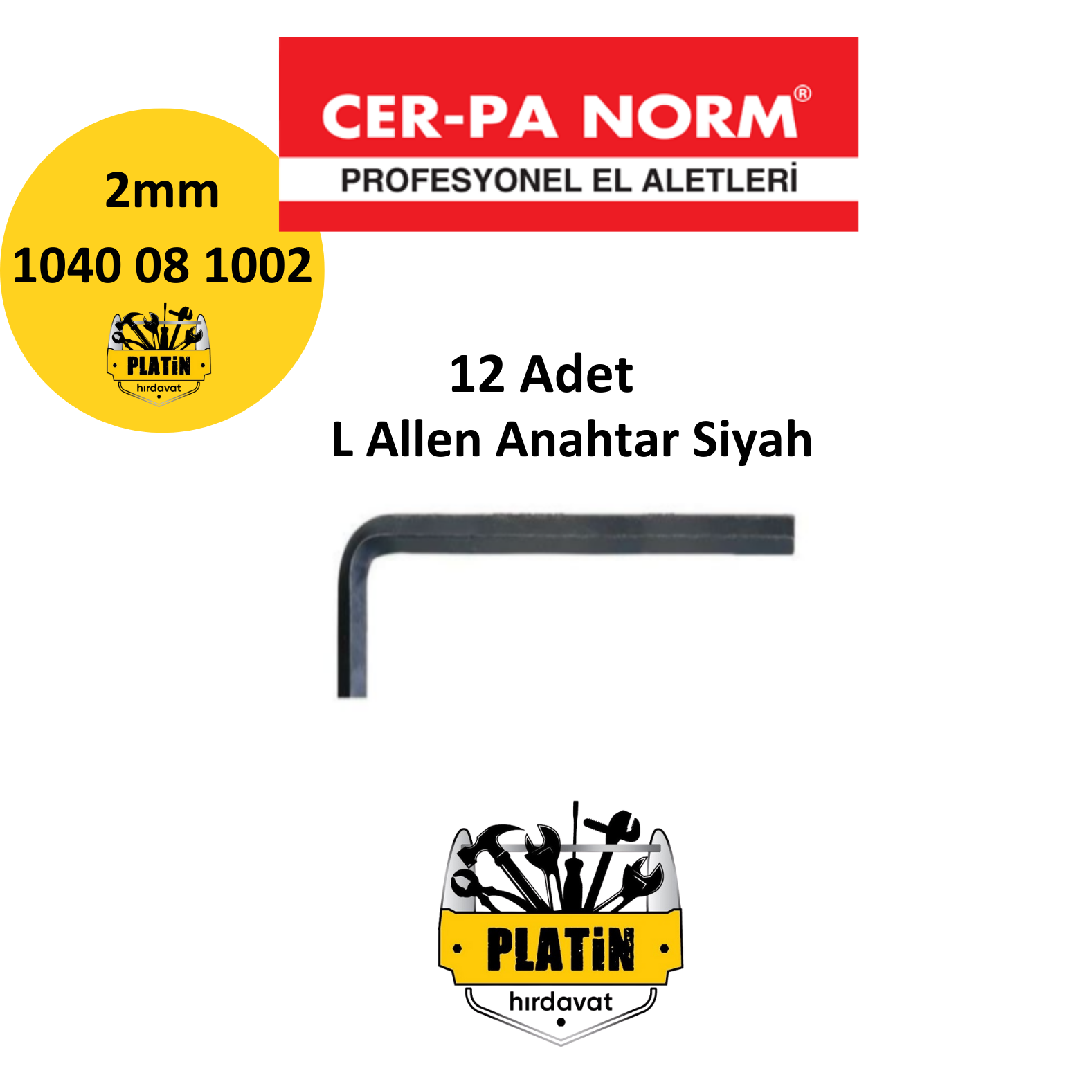 Cerpa L Allen Anahtar Siyah 2mm - (12 Adet) 1040 08 1002