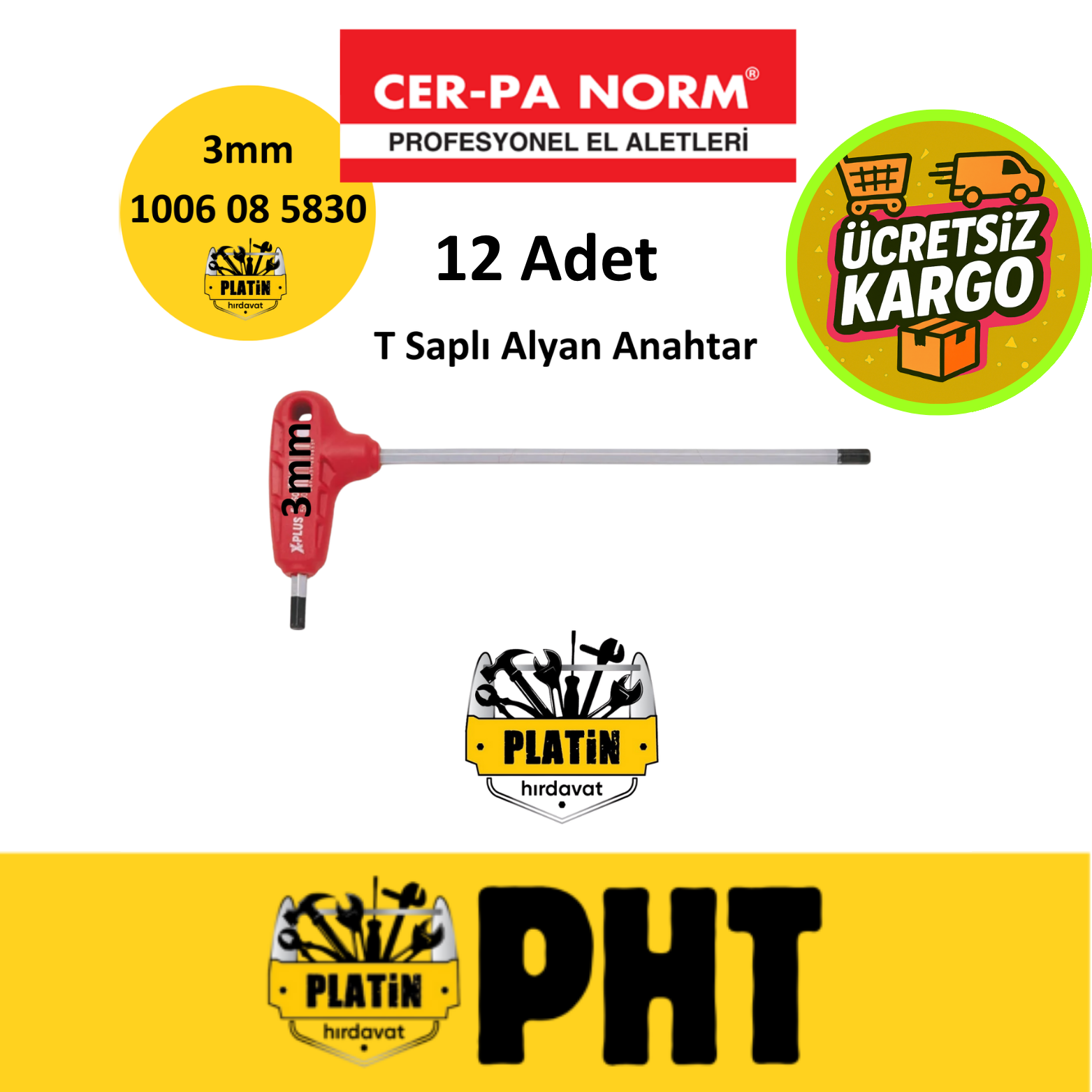 Cerpa X-Plus T Saplı Alyan Anahtar Allen 3mm 1006 08 5830 ( 12 Adet )