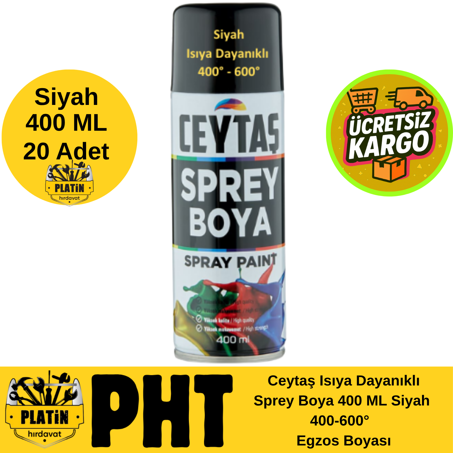 Ceytaş Isıya Dayanıklı Sprey Boya 400 ML Siyah 400-600° ( 20 Adet ) Egzos Boyası