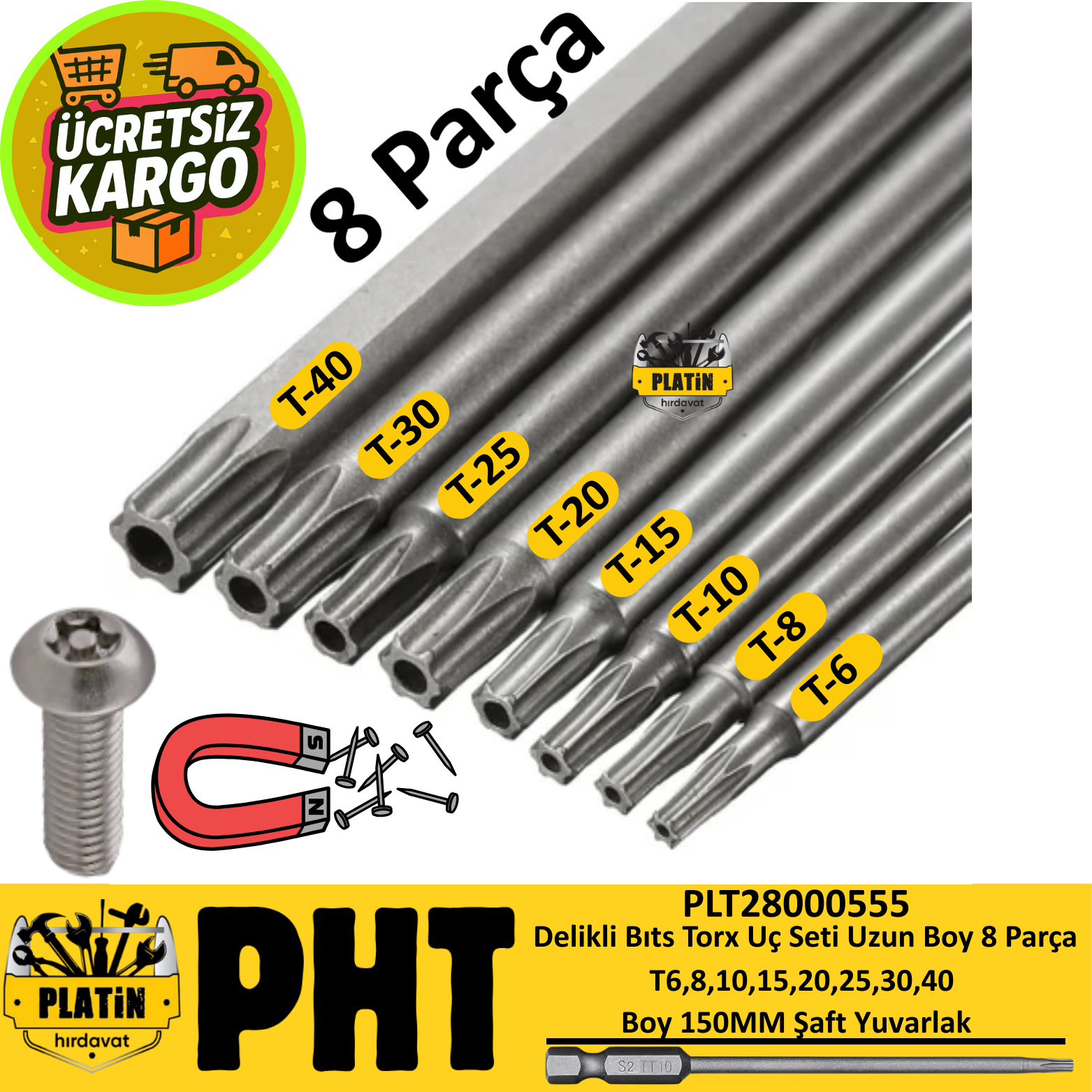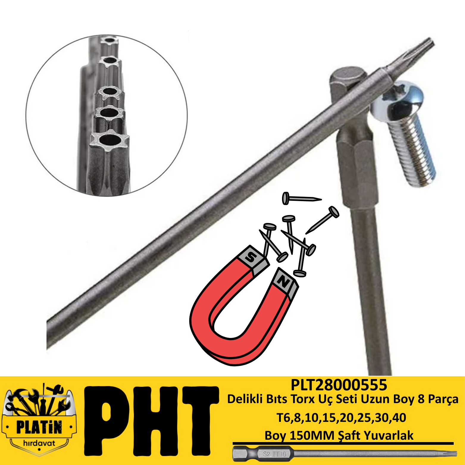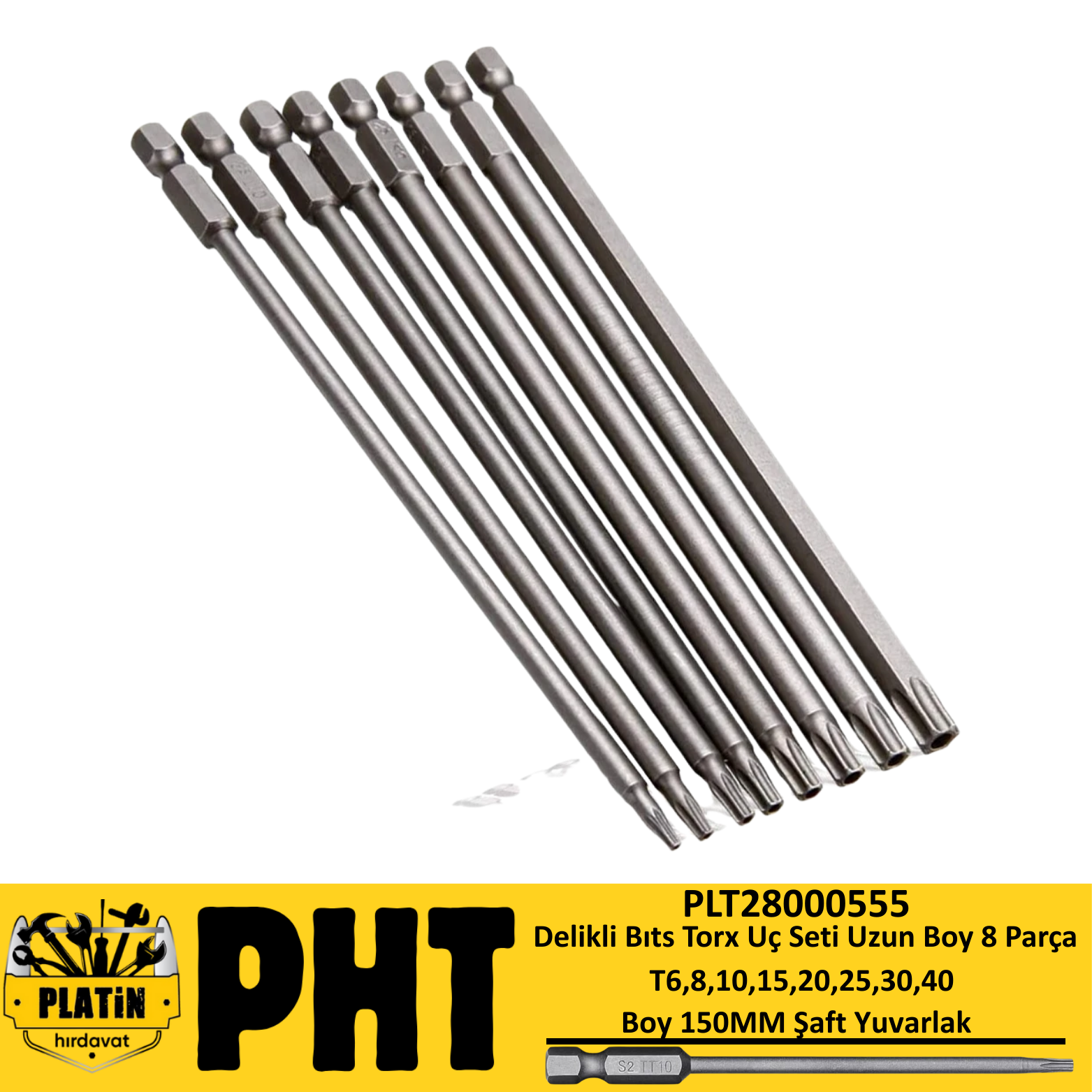 PHT Delikli Bıts Torx Uç Seti Uzun Boy 150MM ( 8 Parça ) T6,8,10,15,20,25,30,40 PLT28000555