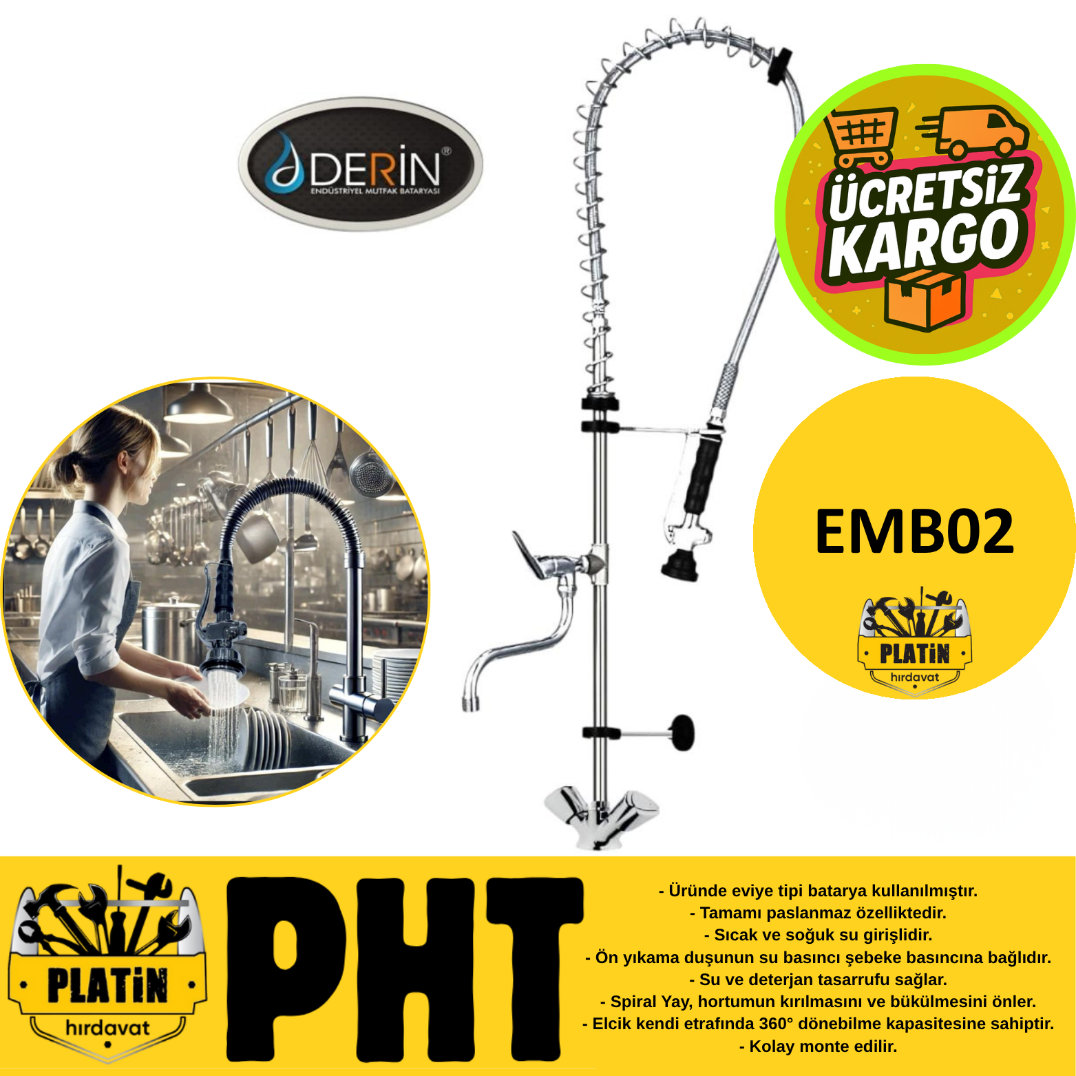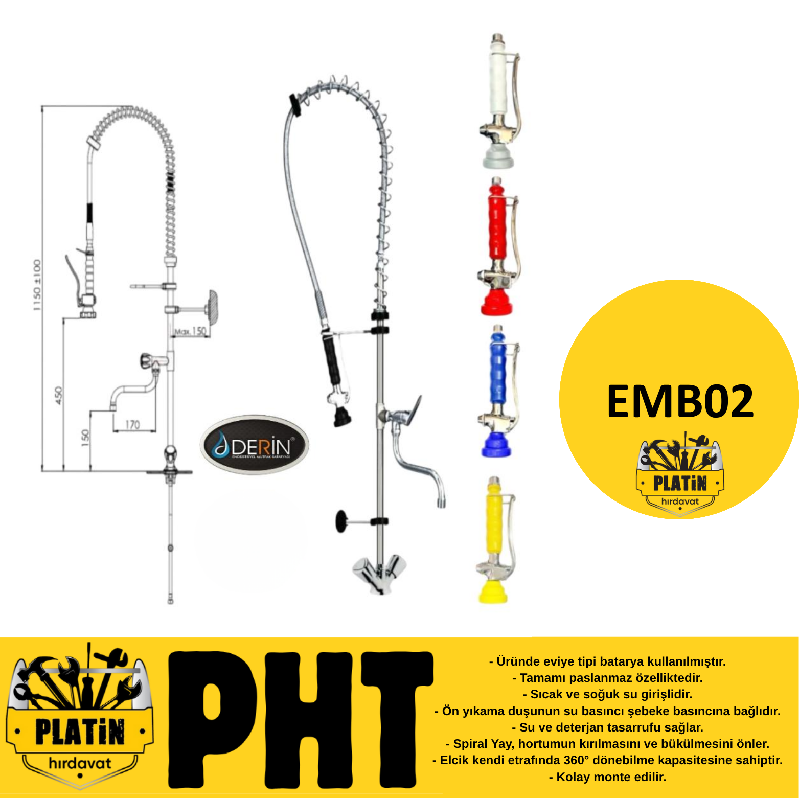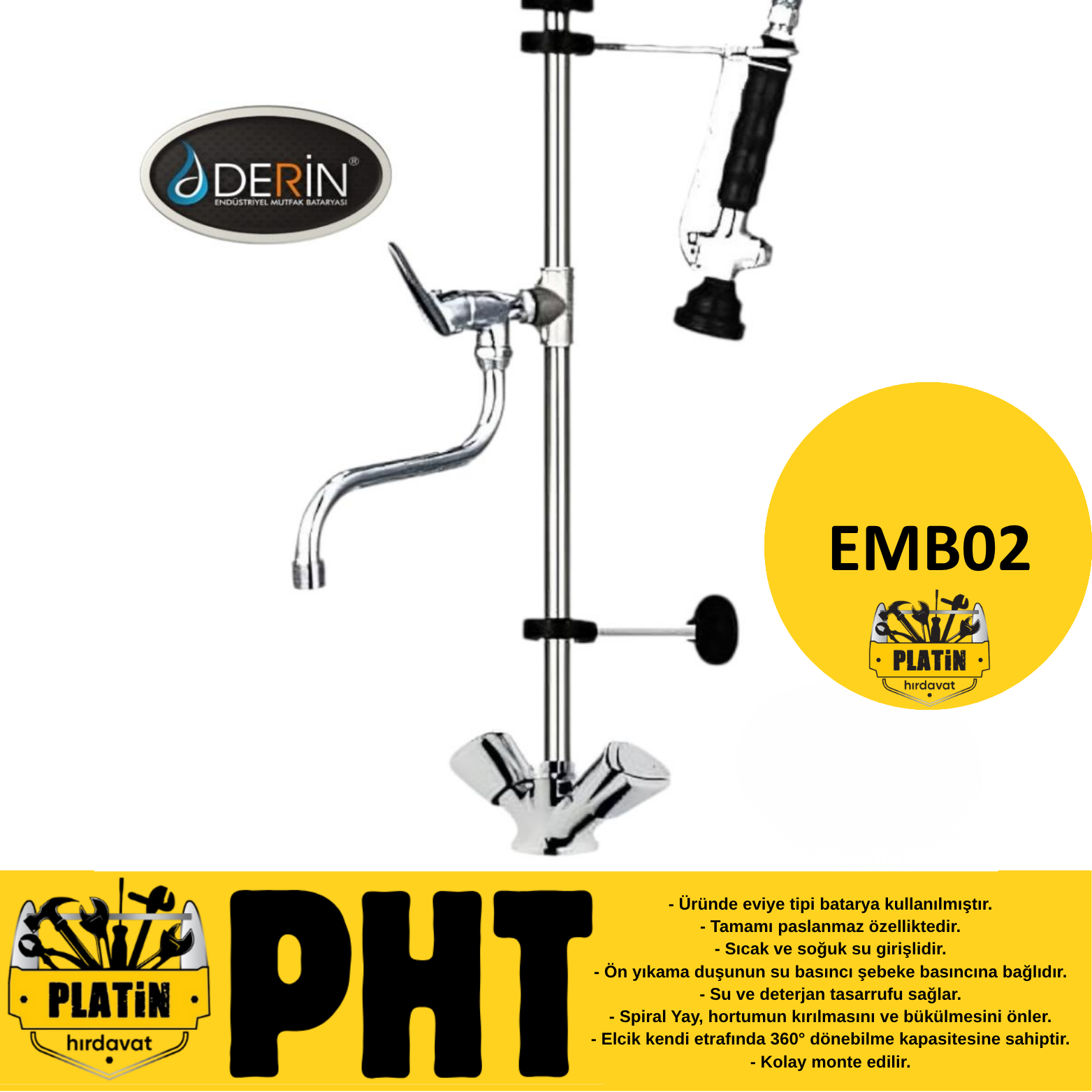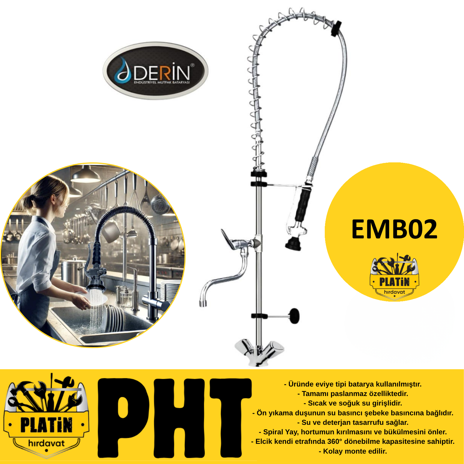 Derin Mutfak Bataryası Endüstriyel Çift Fonksiyonlu Ara Musluklu, Esnek Yaylı Batarya EMB02