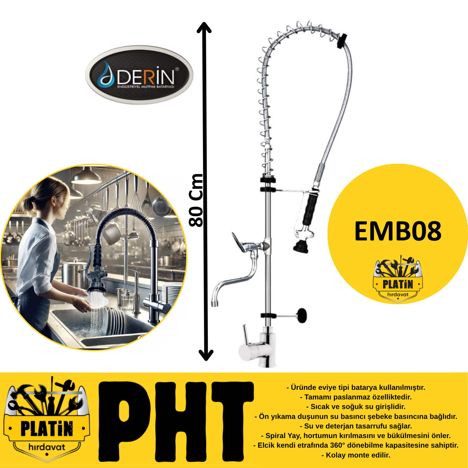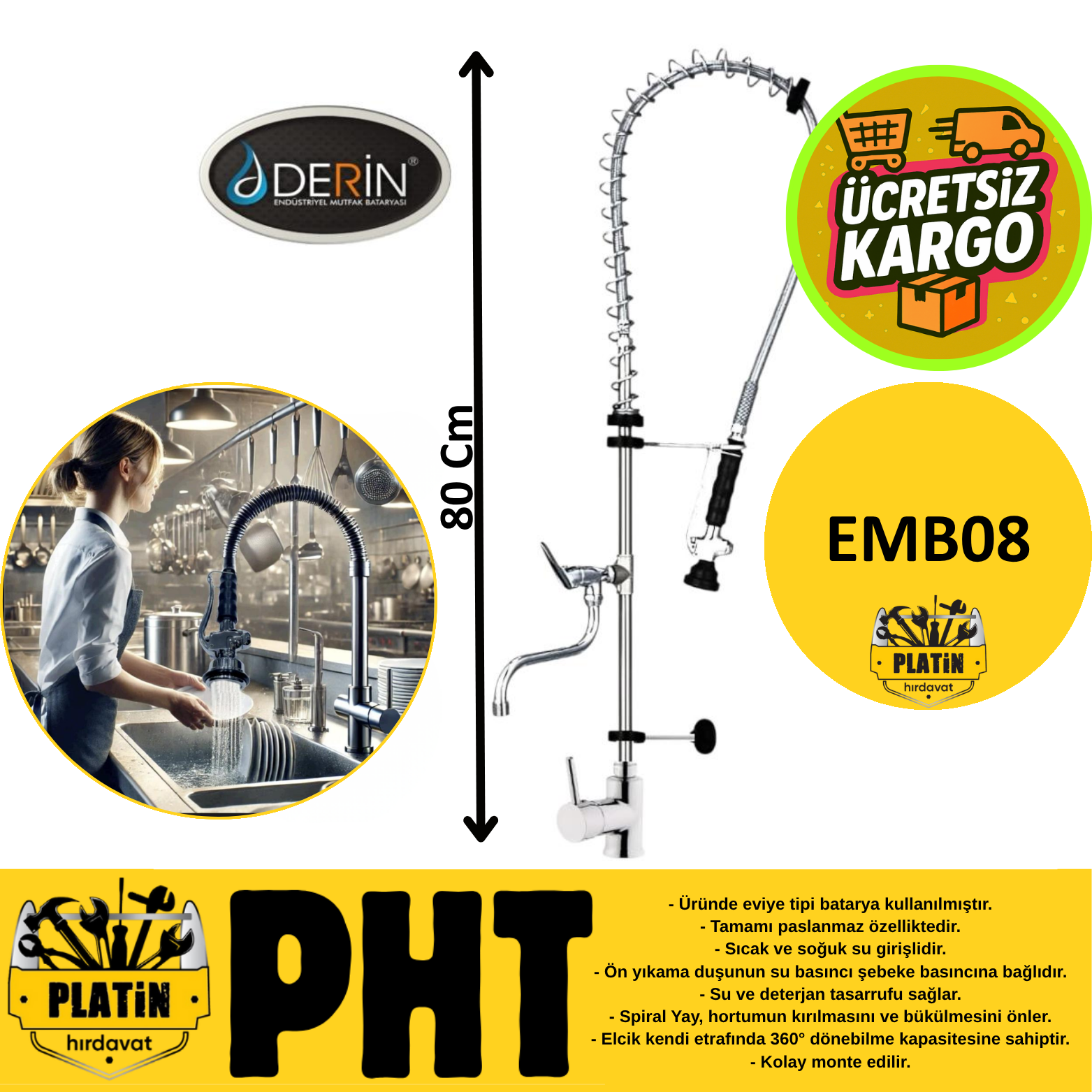 Derin Mutfak Bataryası Endüstriyel Çift Fonksiyonlu Ara Musluklu, Esnek Yaylı Batarya EMB08