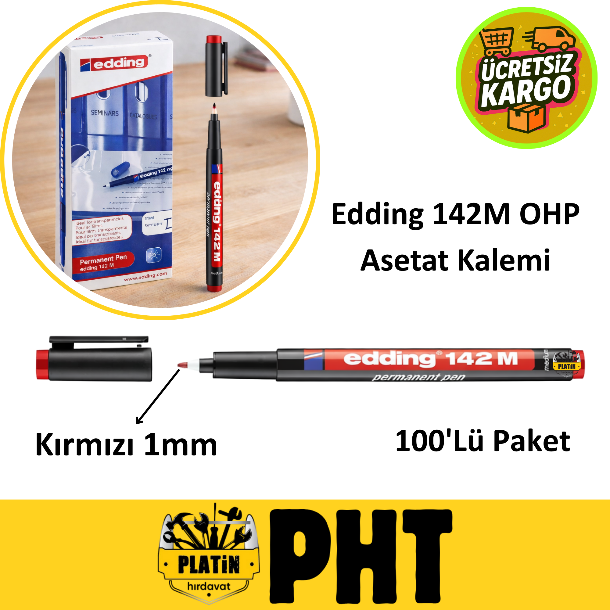 Edding 142M OHP Asetat Kalemi Kırmızı Uç, 1mm ( 100 Adet ) PLT28000027