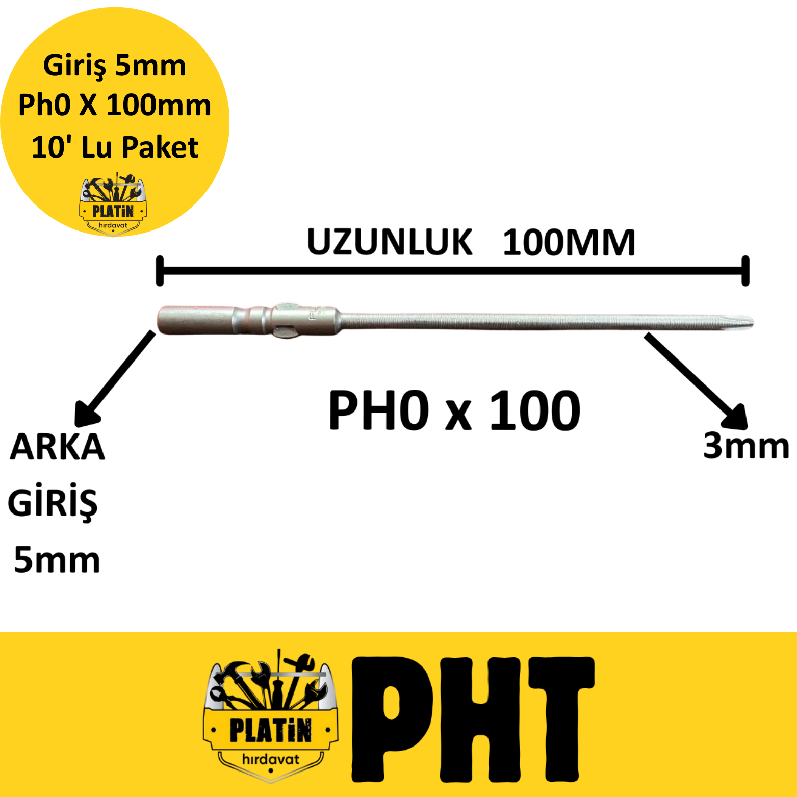 PHT Elektrikli Vidalama Ucu Uzun R5 Ph0 x 100mm ( 10 Adet ) plt2800064