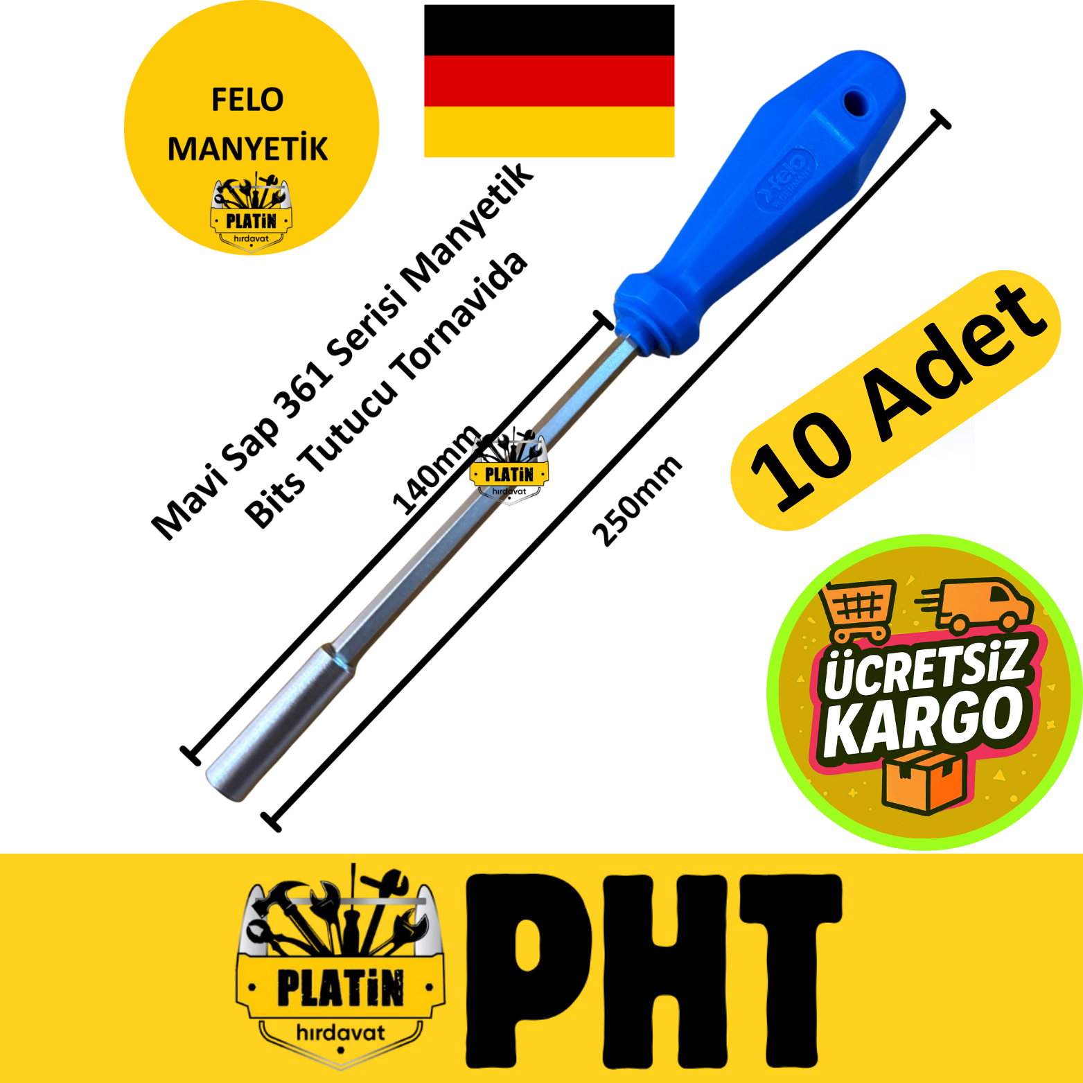 Felo Mavi Sap 361 Serisi Manyetik Bits Tutucu Tornavida ( 10 Adet )