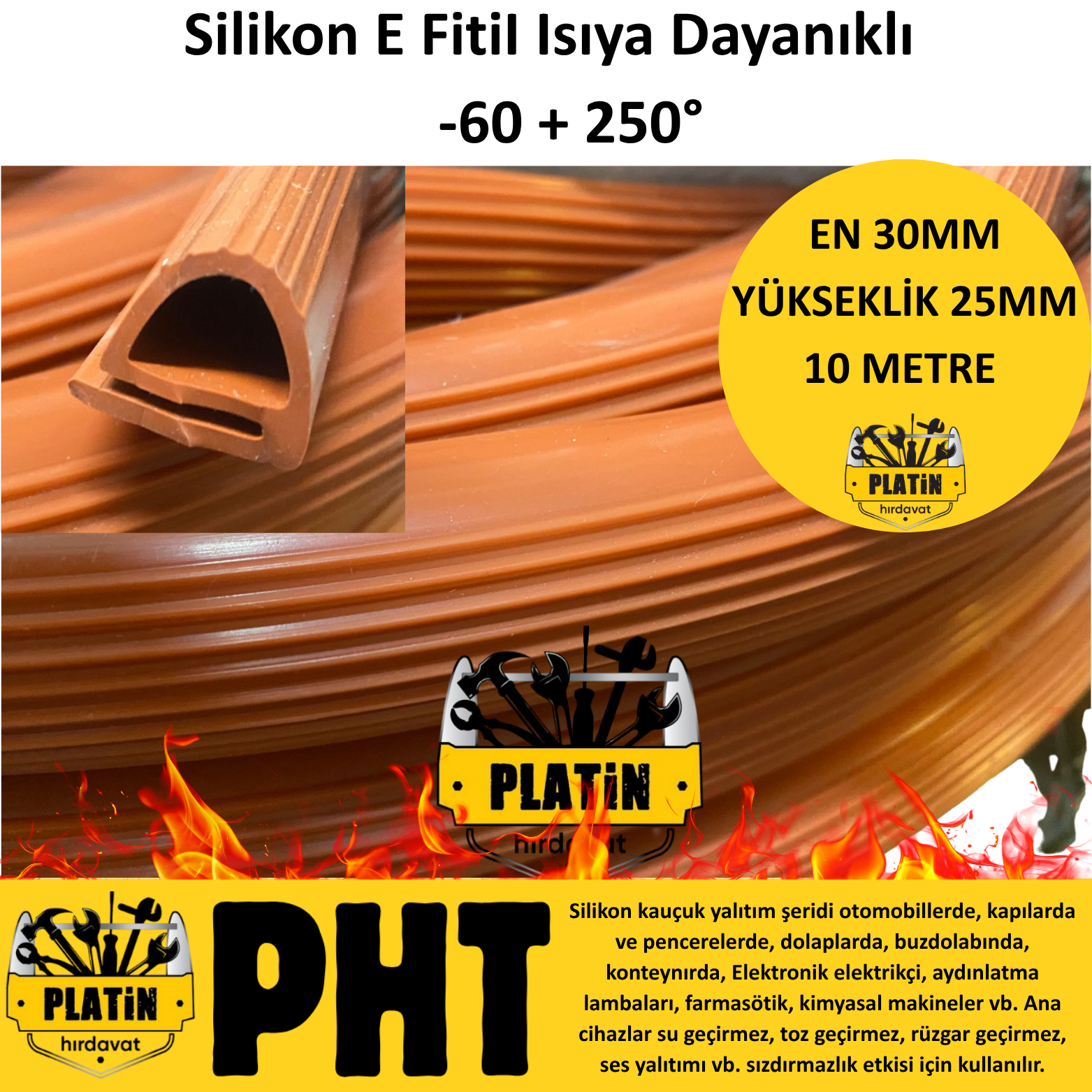PHT Ars Isıya Dayanıklı Silikon Fırın Cam Contası E Fitili Cam Genişlik 30mm Yükseklik 25mm ( 10 Metre ) plt28000220