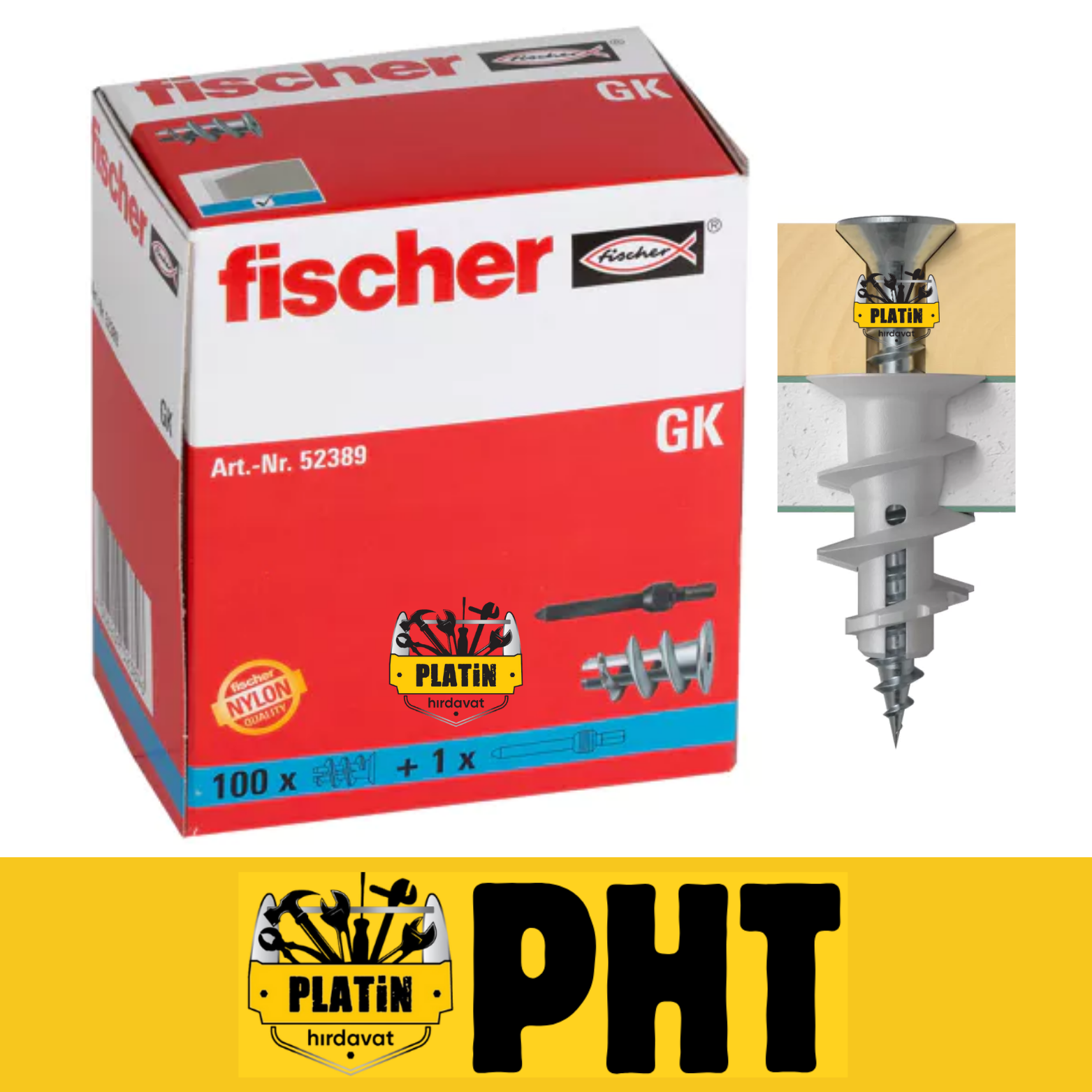 fischer alçıpan sabitleme GK, yüksek kaliteli naylondan yapılmıştır. Sabitleme, ön pozisyonlamalı montajda kapalı kurulum aleti ile tek ve çift katlı alçı levhanın yüzeyine aynı hizada vidalanır. Spiral tapa uygun bir form oluşturarak tutar. Kompakt tasarım ayrıca panel kalınlığının veya panelin arkasındaki boşluğun bilinmediği duvarlarda montaja izin verir. fischer GK, 4 ila 5 mm kalınlığında ahşap, sac metal ve sunta vidaları ve ayrıca farklı kancalar ve halka başlı vidaları tutabilir. Sonuç olarak, resimler, ışıklar ve elektrik tesisatını vb. güvenli ve hızlı bir şekilde sabitlemek için evrensel olarak uygundur.
