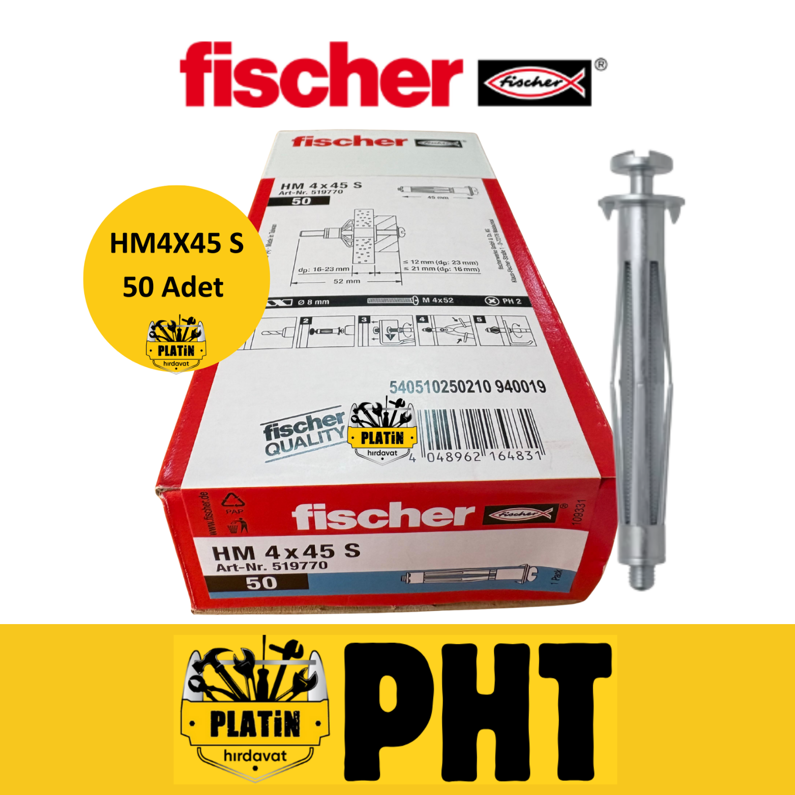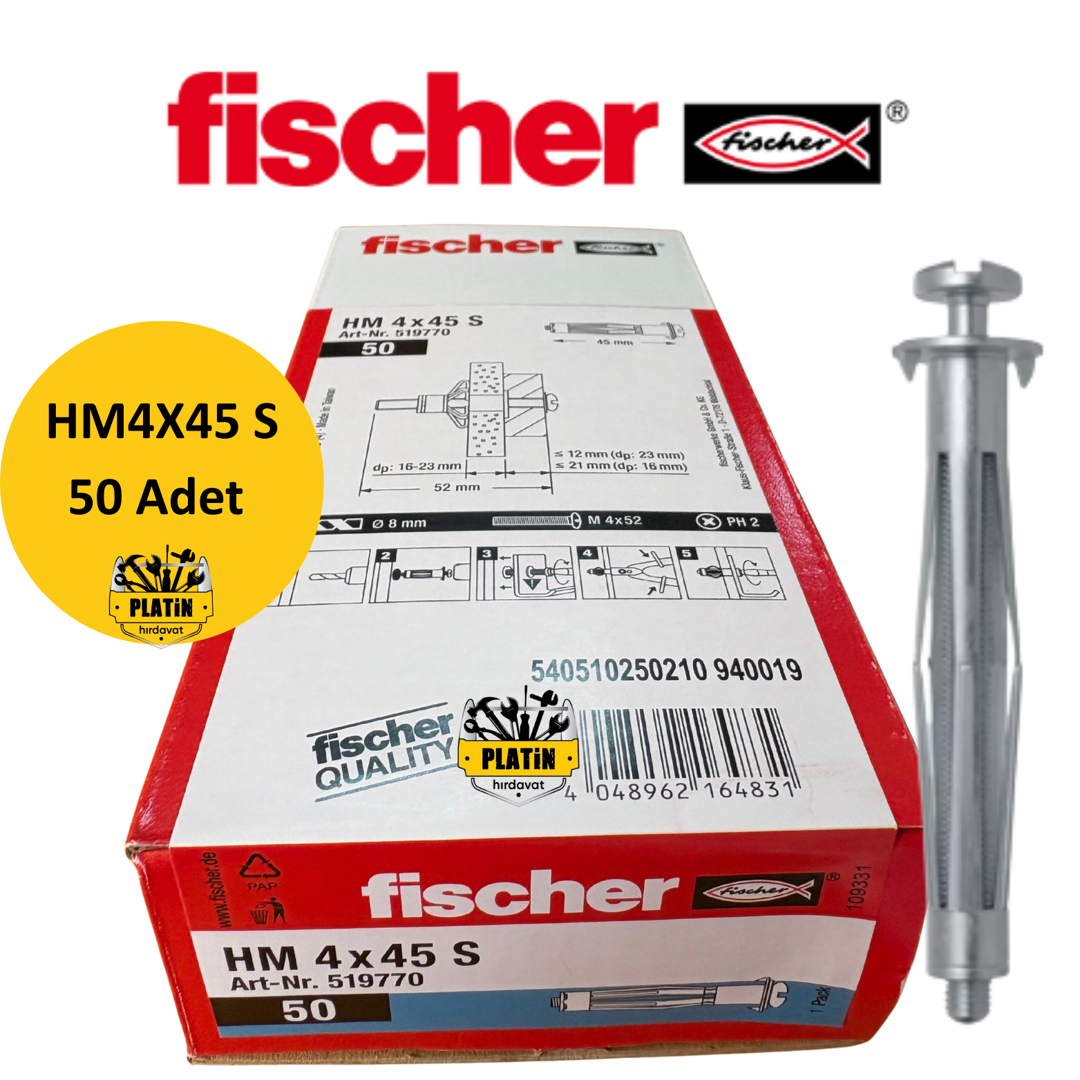 Fischer HM 4X45 S Metal Boşluk Dübeli 50 Adet