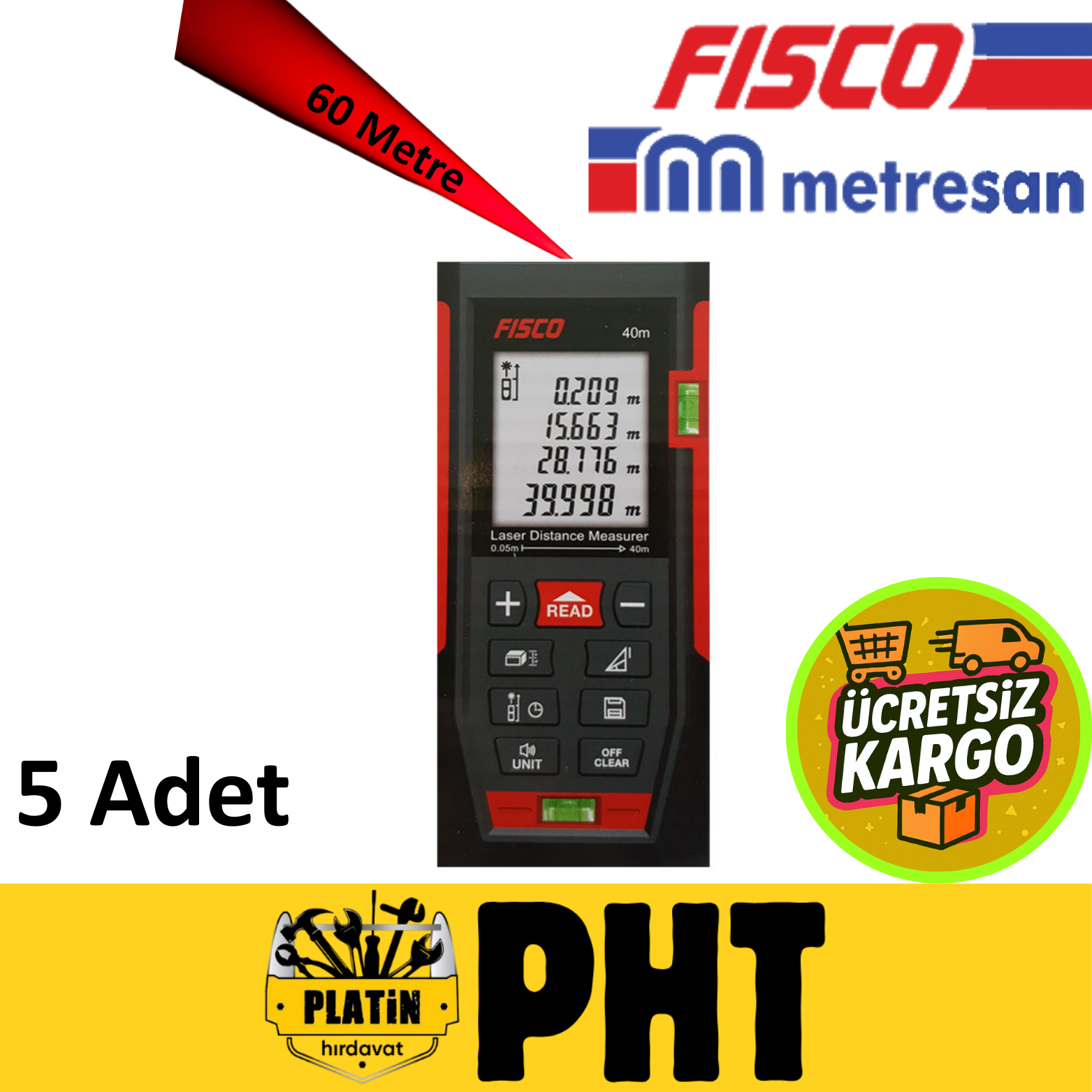 Fisco Dijital Kırmızı Lazer Metre 60 Metre ( 5 Adet ) ST-LM60