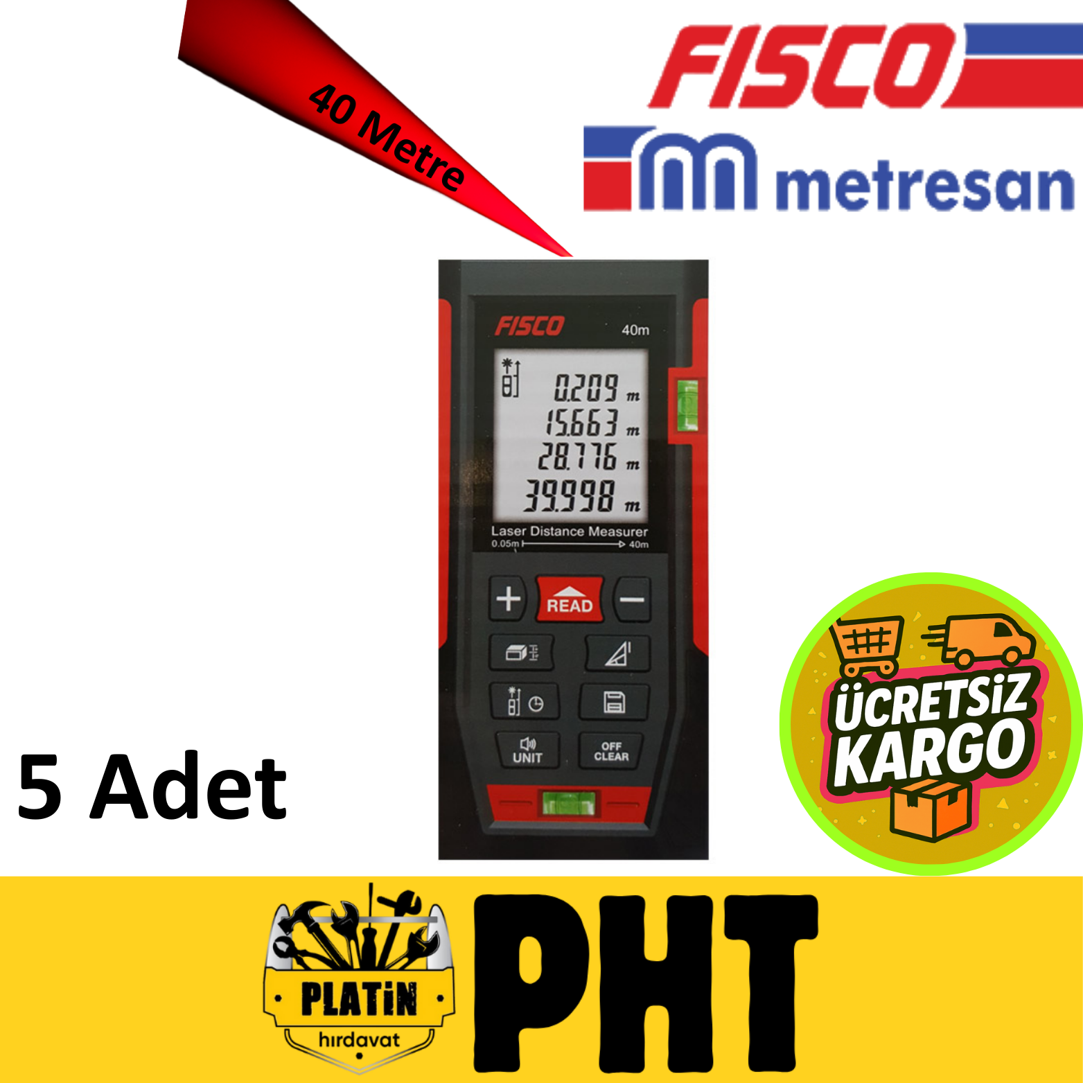 Fisco Dijital Kırmızı Lazer Metre 40 Metre ( 5 Adet ) ST-LM40
