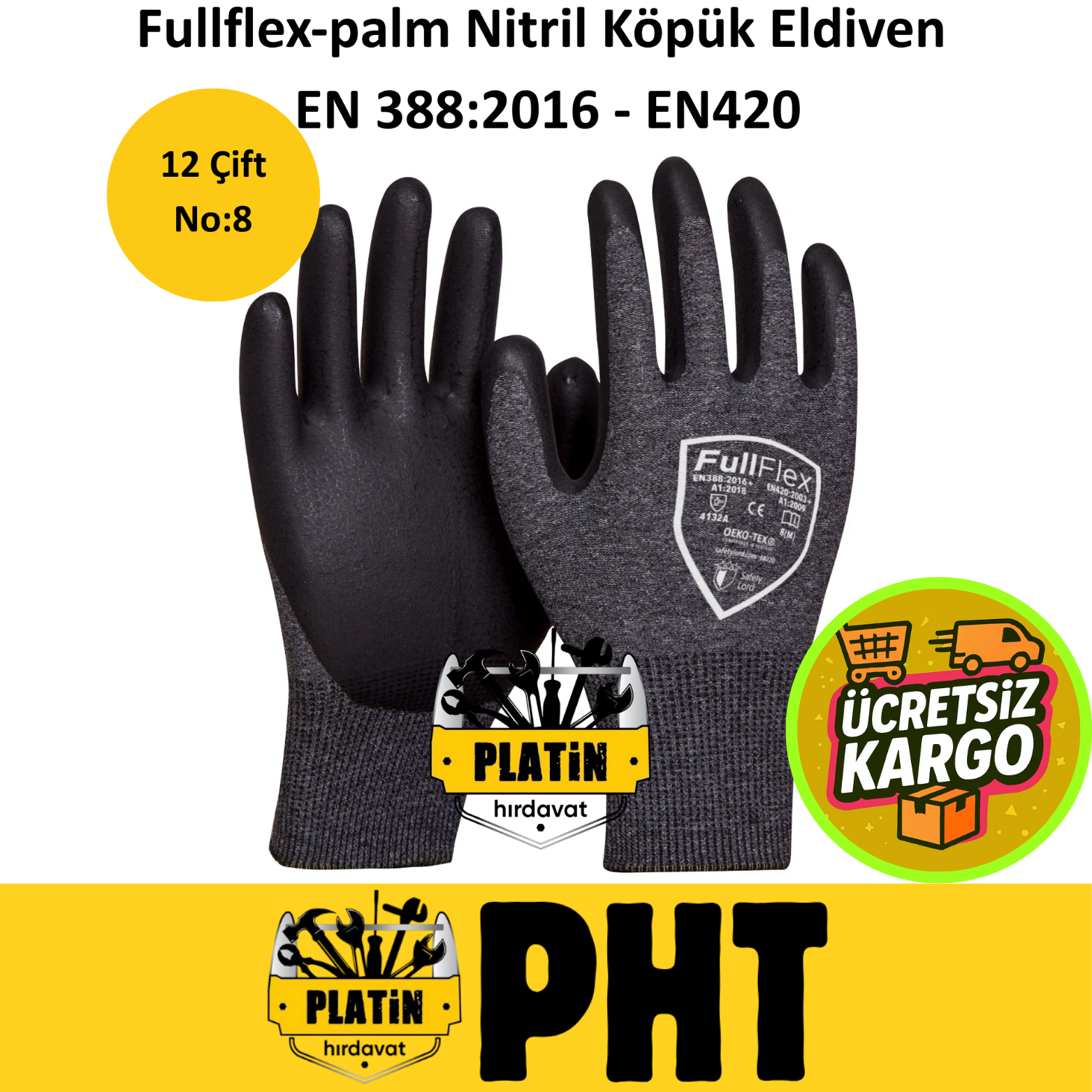 Fullflex-palm Nitril Köpük Eldiven No:8 - 12'li Paket EN 388:2016 + A1:2018