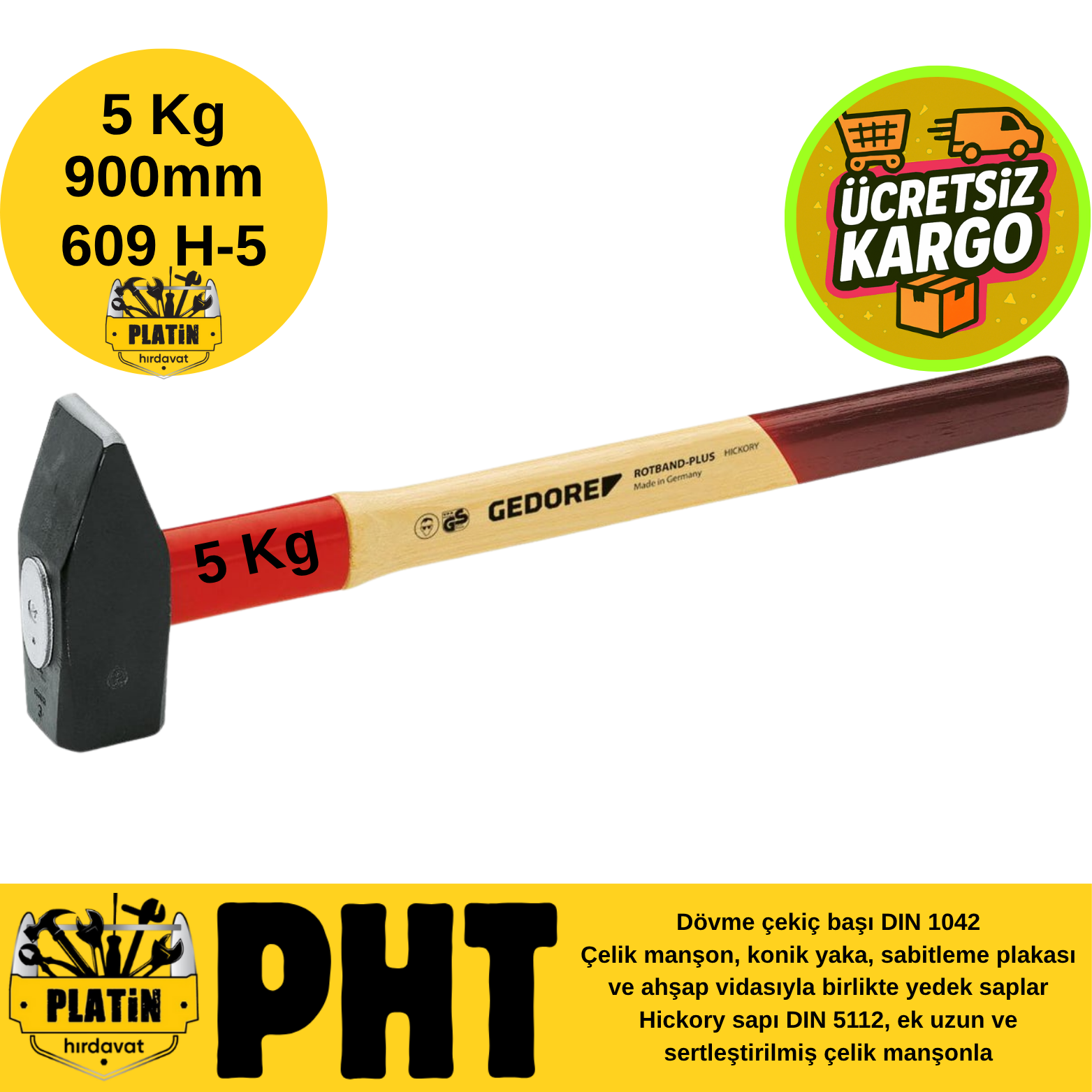 GEDORE Balyoz 609 H-5 ROTBAND-PLUS 5 kg, 900 mm