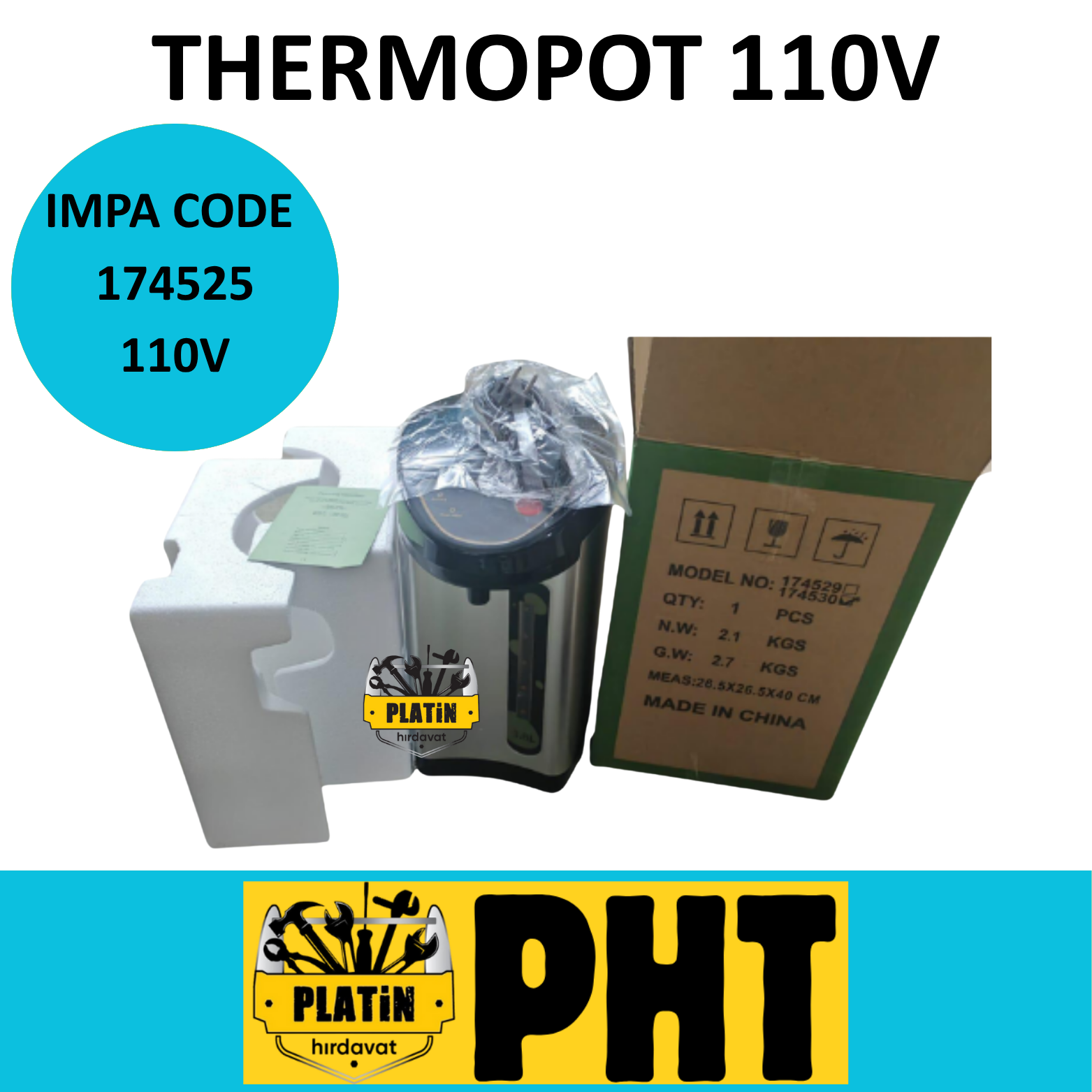 PHT Impa 174525 ELECTRIC THERMO POT Sürekli Sıcak Su Makinası 3.8 LTR 110V