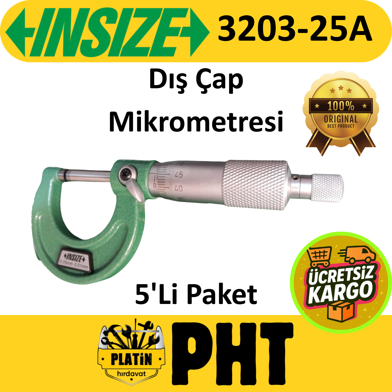 Insize 3203-25A Dış Çap Mikrometresi 0-25 mm / 0,01 ( 5 Adet )