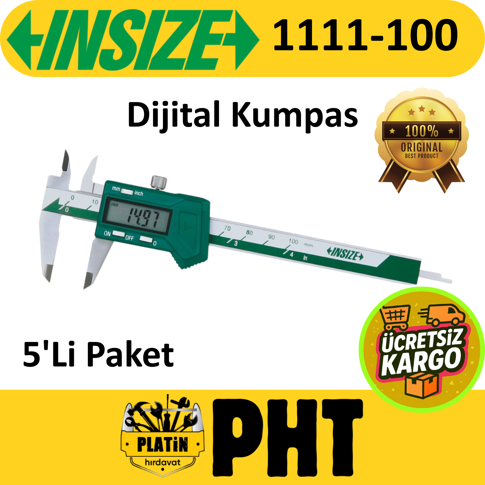 Insize 1111-100 Dijital Kumpas 100mm Hassasiyet: 0,01 mm/ 0,0005” ( 5 Adet )