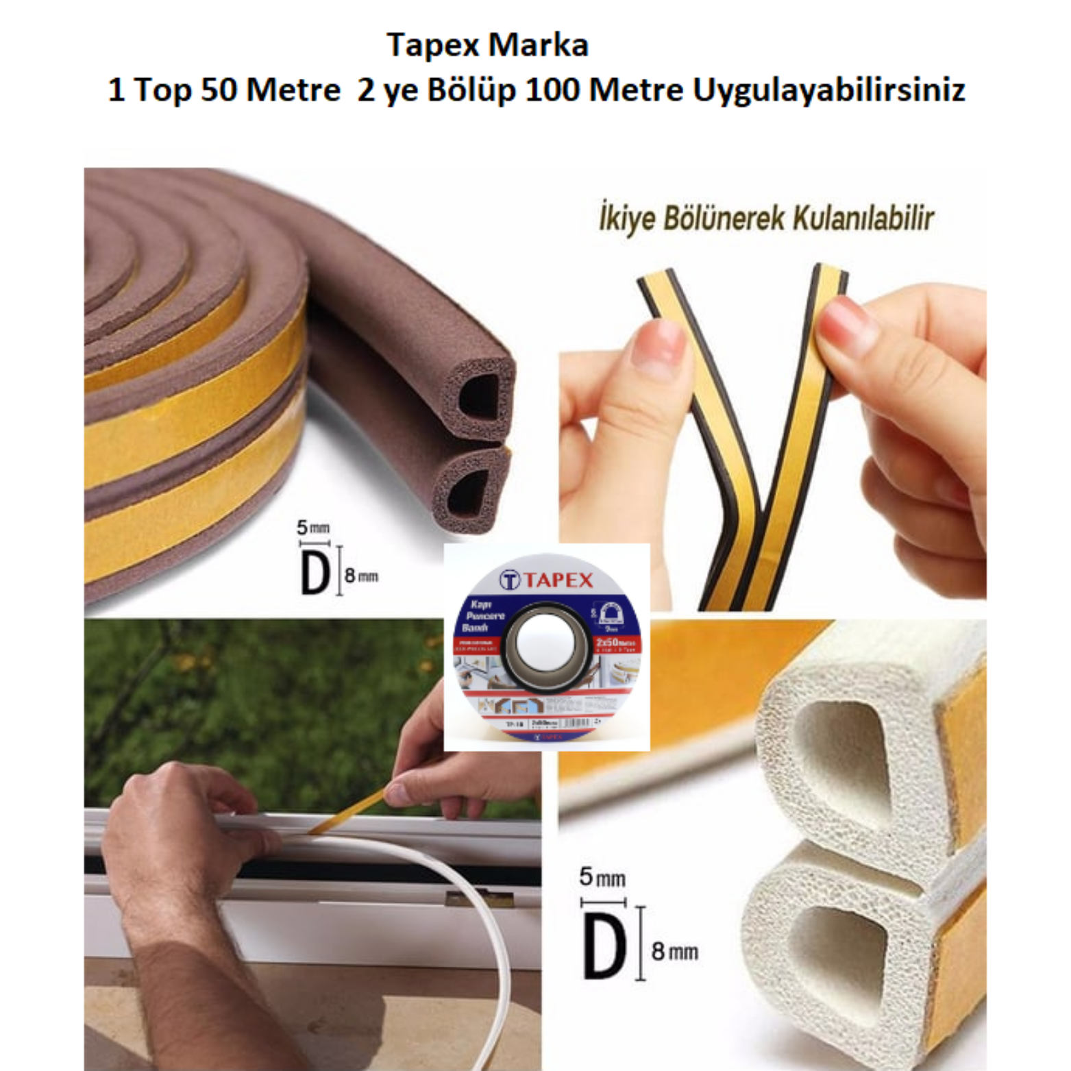 Tapex Kapı ve Pencere İzolasyon Bandı - Fitili 50x2 = 100 Metre Beyaz