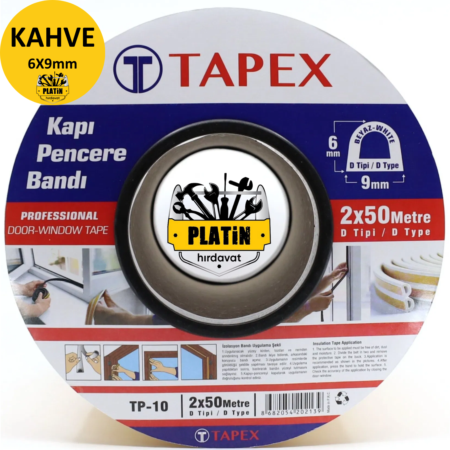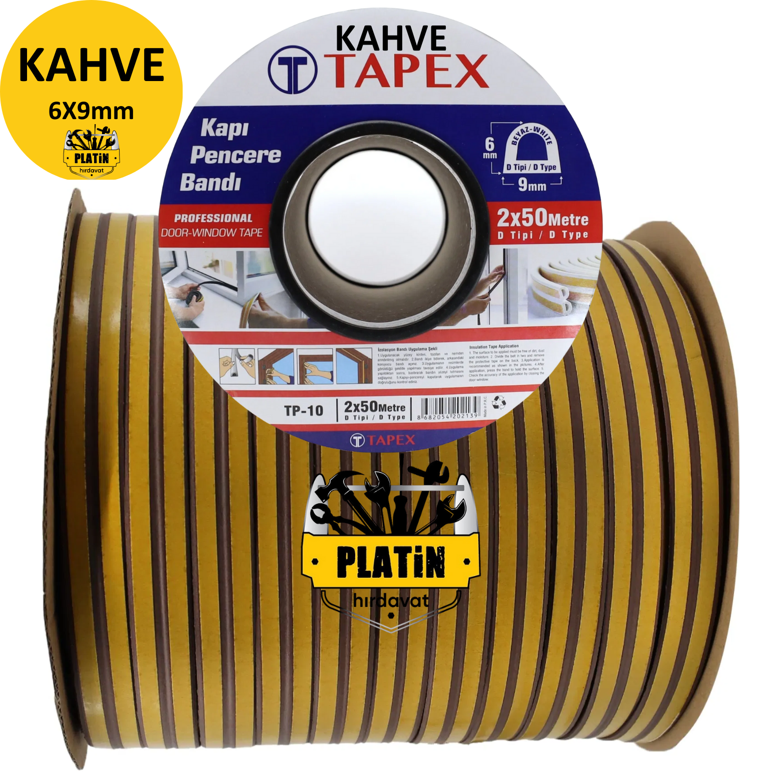 Tapex Kapı ve Pencere İzolasyon Bandı - Fitili 50x2 = 100 Metre Kahverengi 8'li Paket