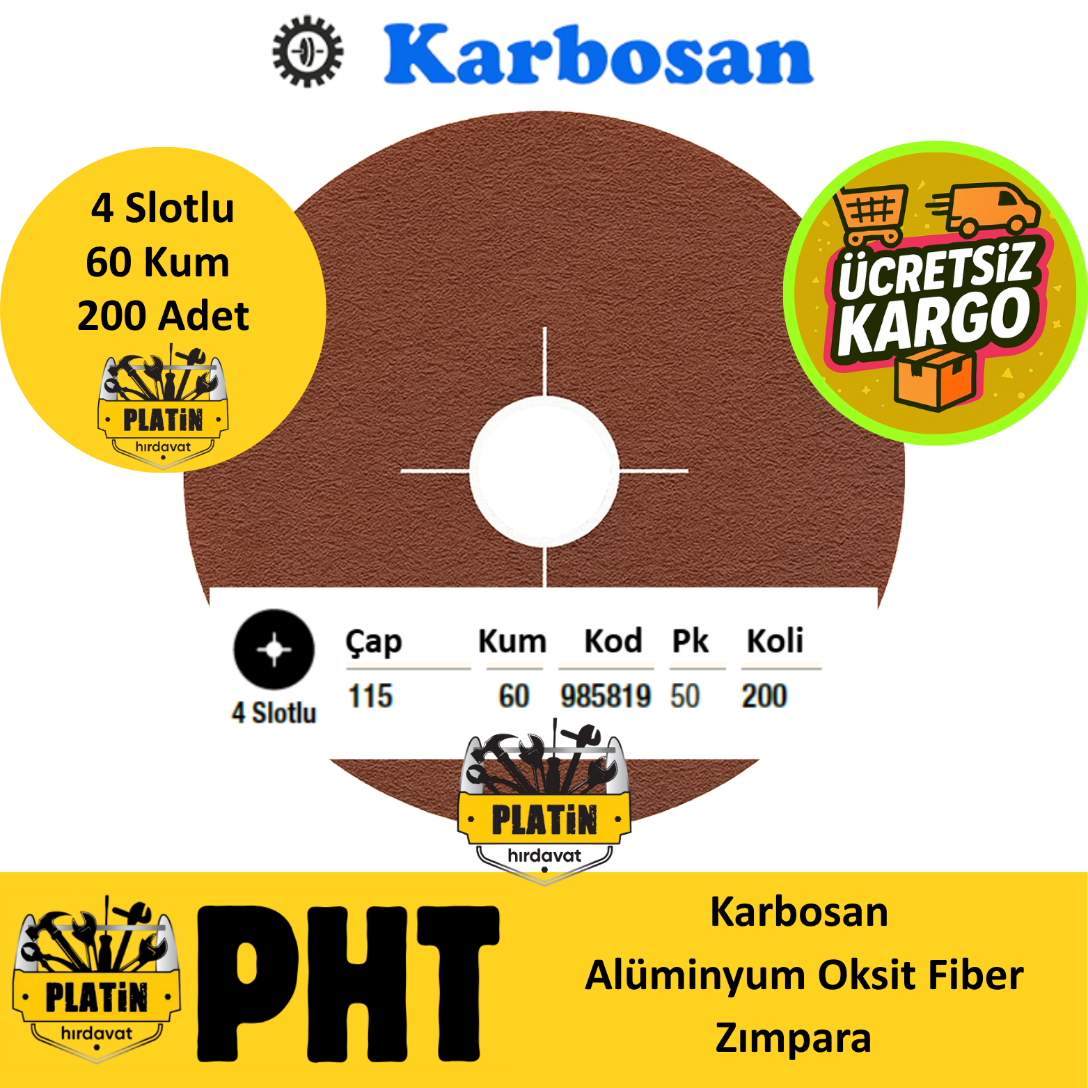 Karbosan Fiber Disk Zımpara 4 Slotlu 60 Kum 985819 ( 200 Adet )