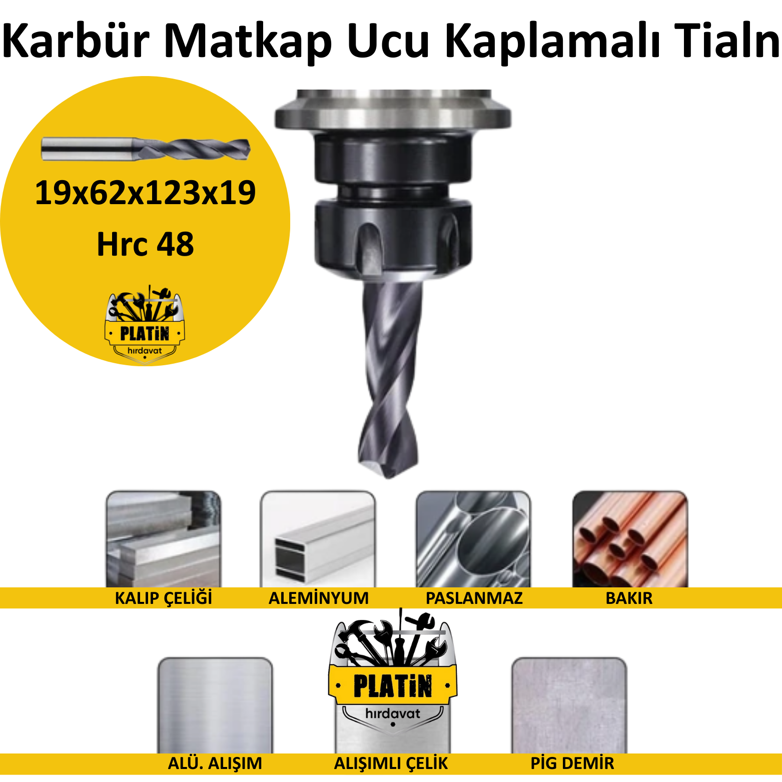 Maraton Hole Karbür Matkap Ucu 19mm 19x62x123x19 Hrc 48 Kaplamalı Tialn