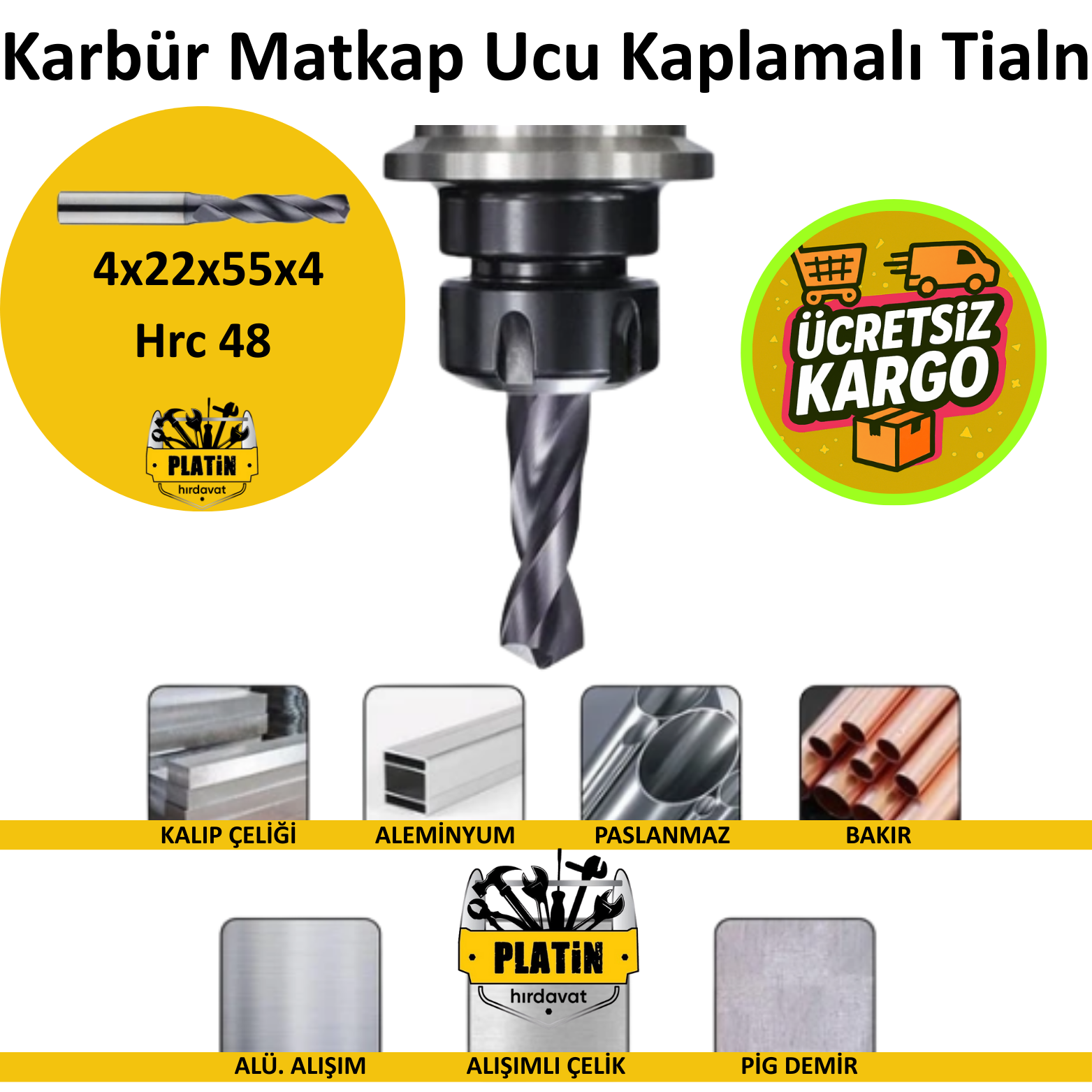 Maraton Hole Karbür Matkap Ucu 4mm 4x22x55x4 Hrc 48 Kaplamalı Tialn ( 10 Adet )