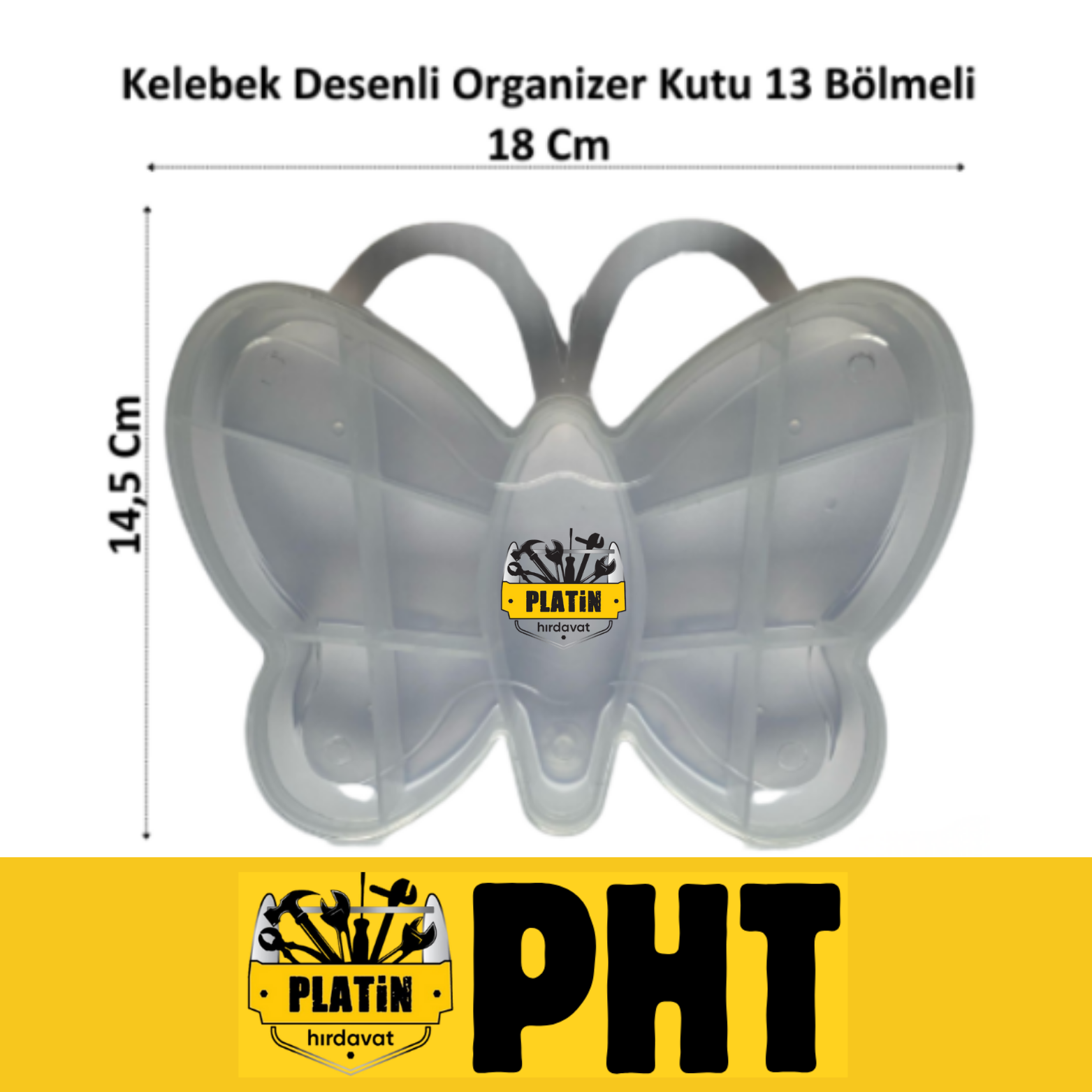 PHT Platin Hırdavat Kelebek Desenli Organizer Şeffaf Kutu Hobby, Takı, Boncuk, 13 Bölmeli plt2800013