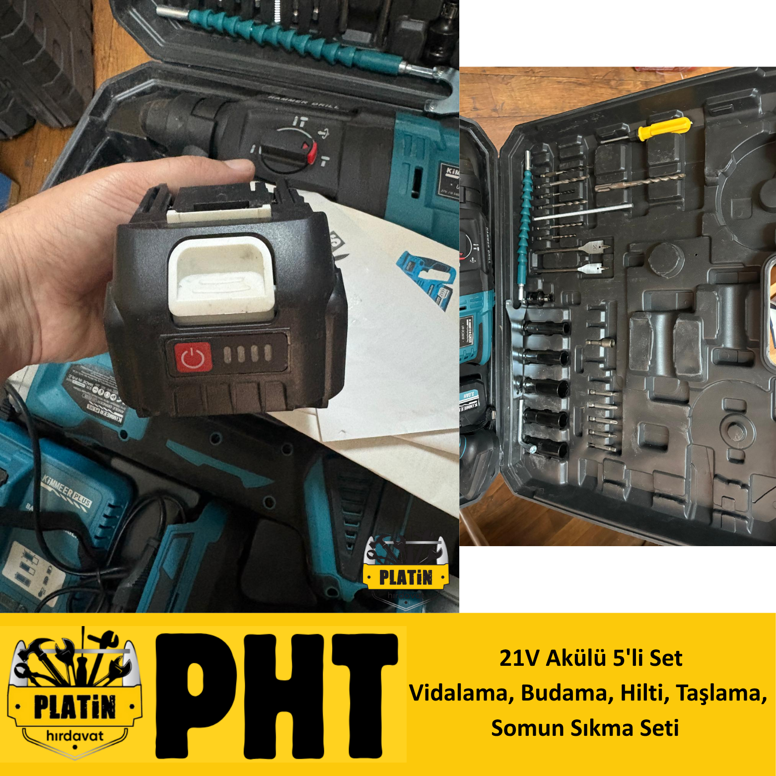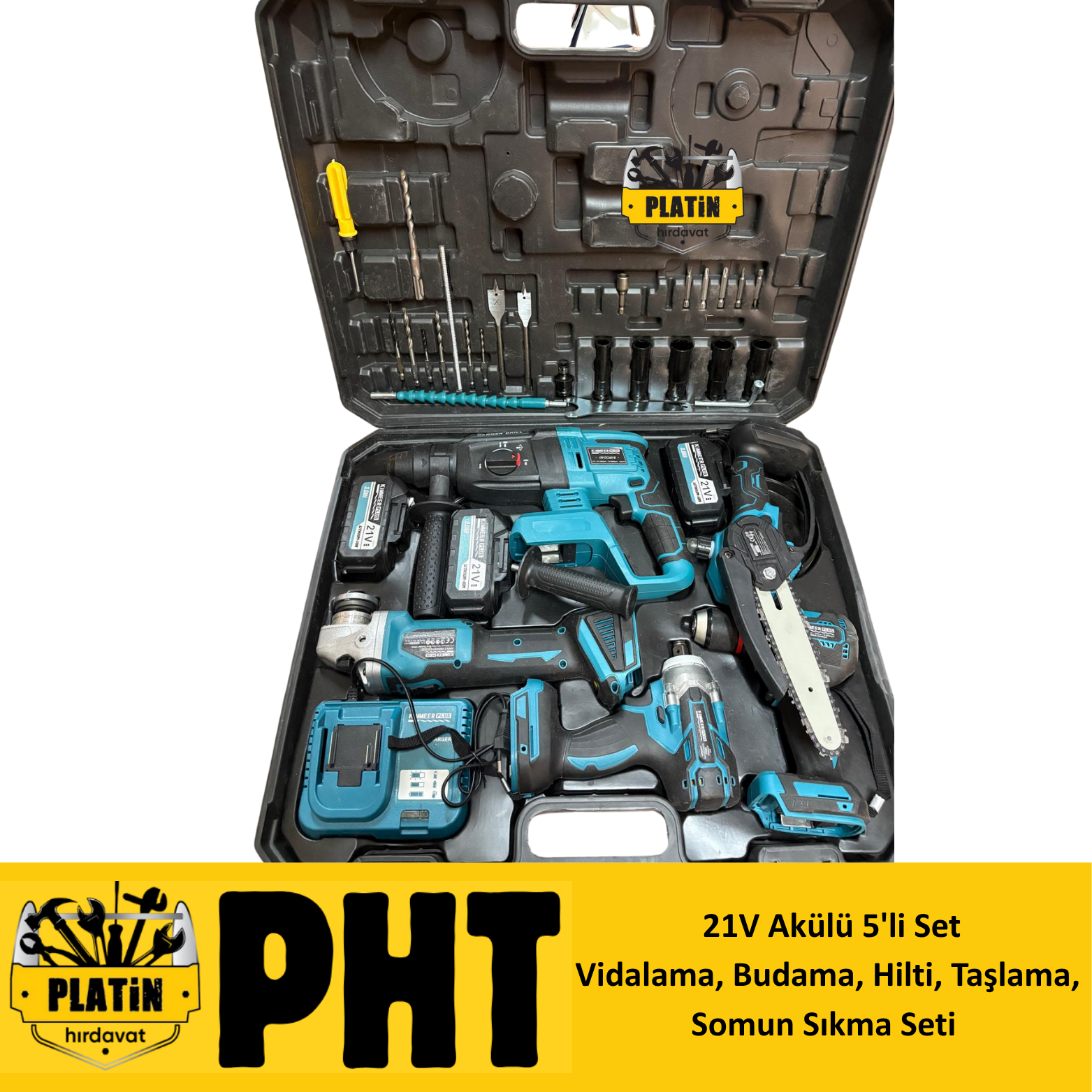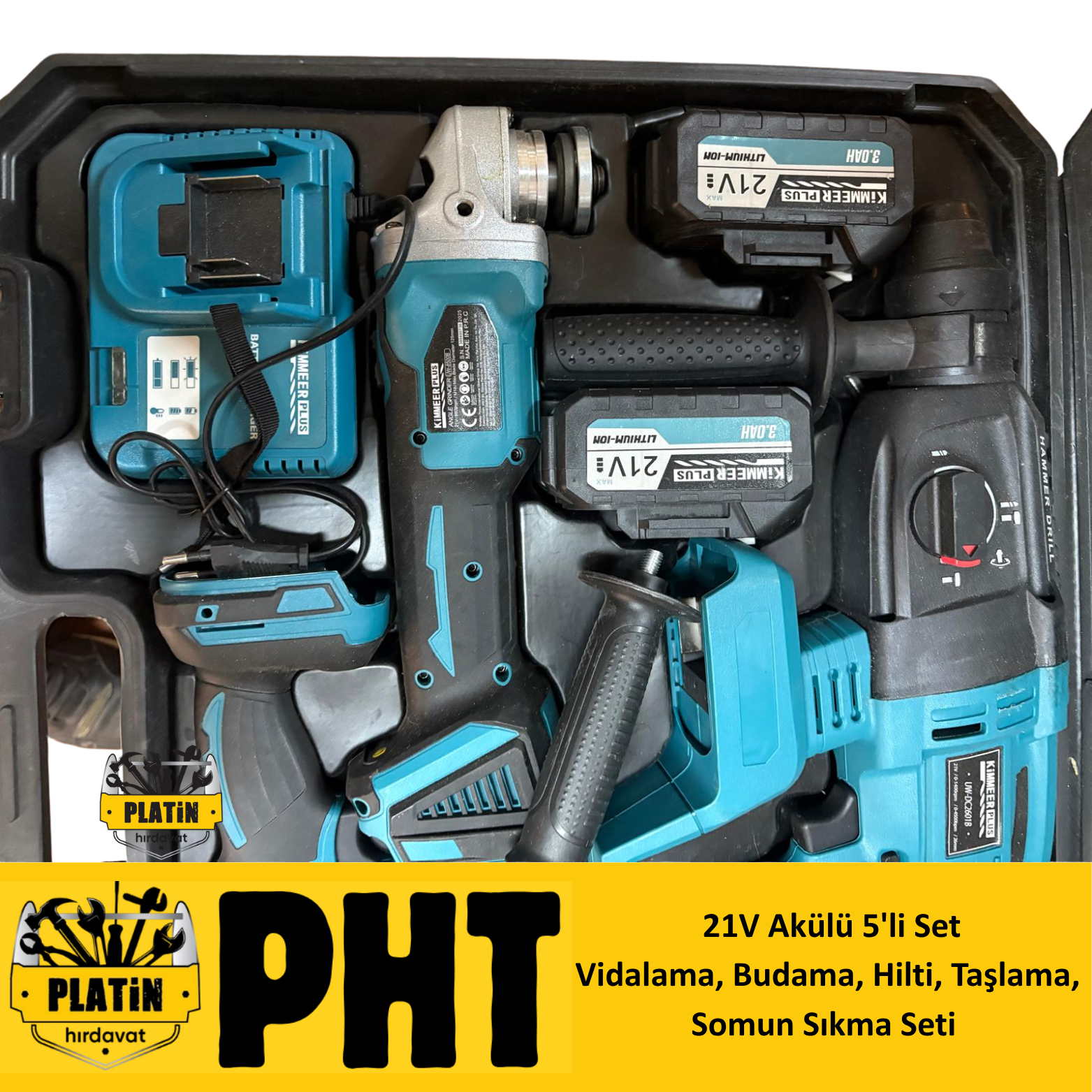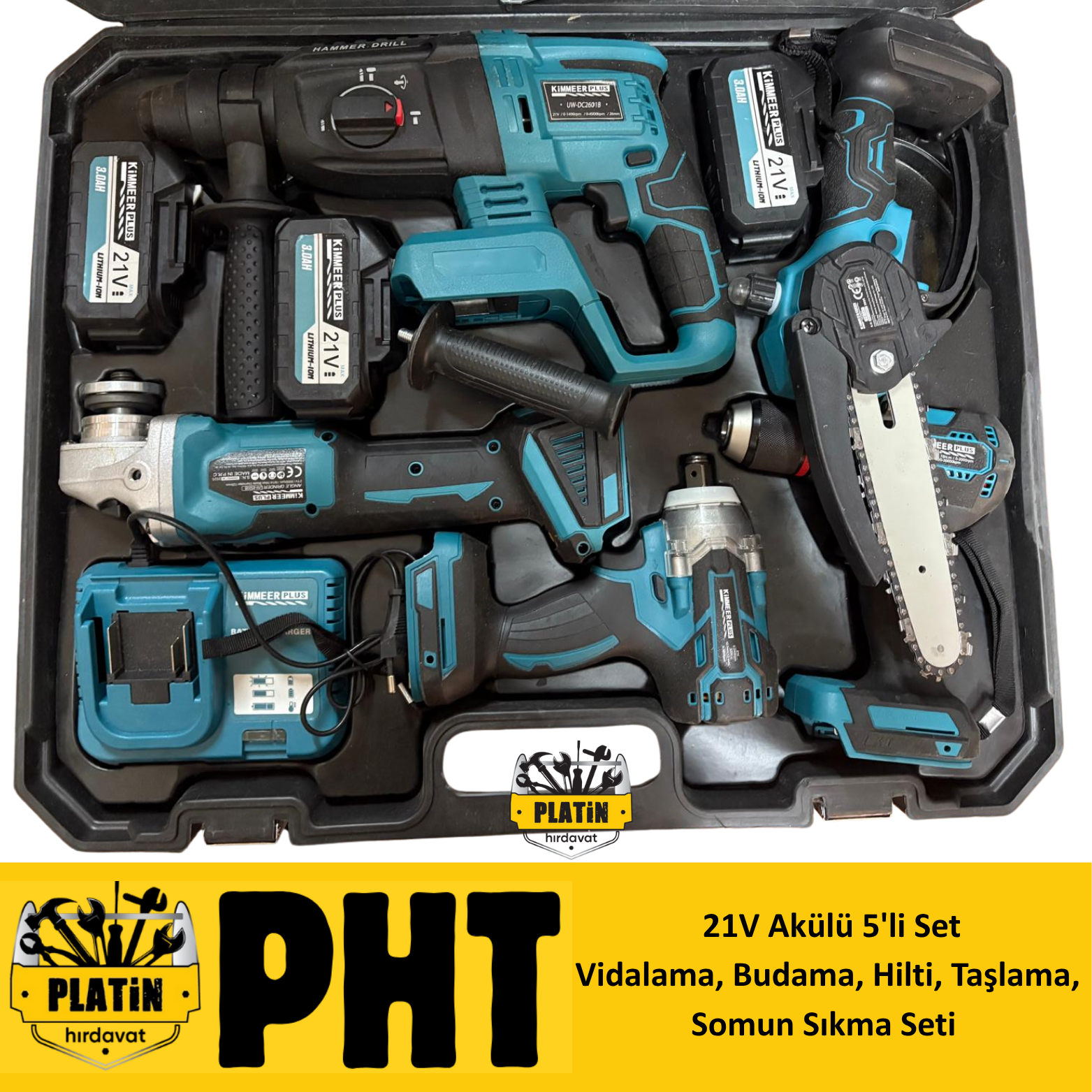 Kimmer Plus 21V Akülü 5'li Set Kırıcı Hilti Taşlama Somun Sıkma Seti