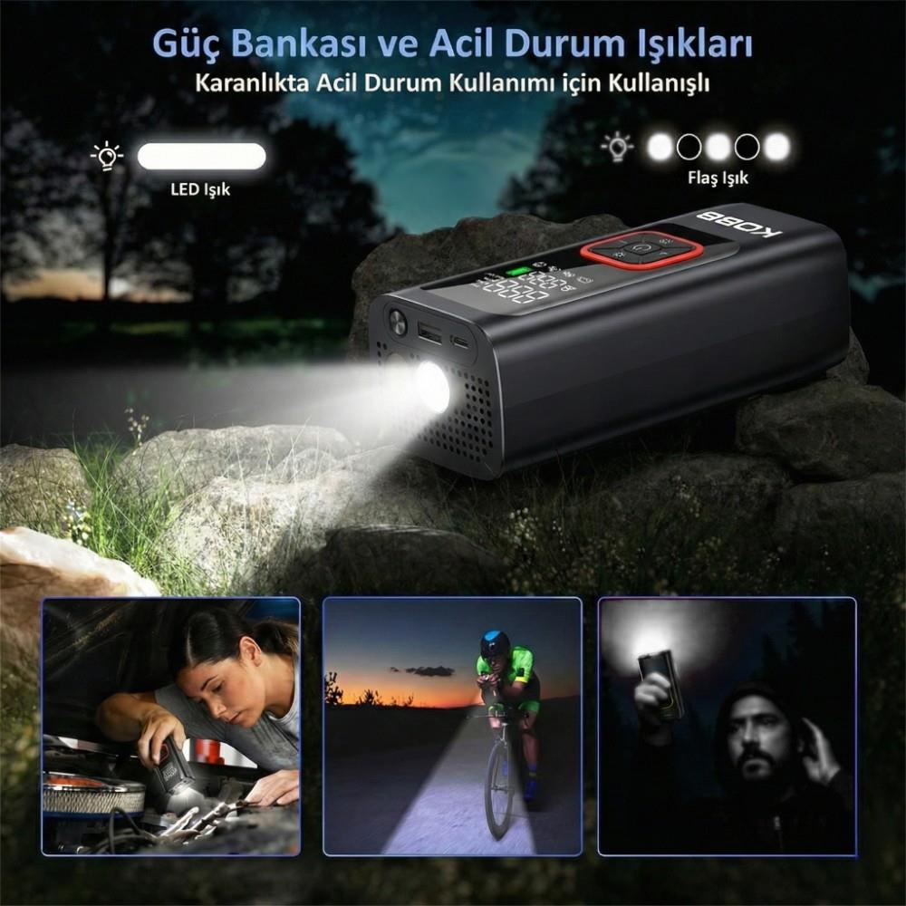 KOBB KB426 12V / Şarjlı Li-ion 150 PSI Dijital Göstergeli Akıllı Lastik Şişirme Pompası+ Powerbank + SOS + Led Lamba