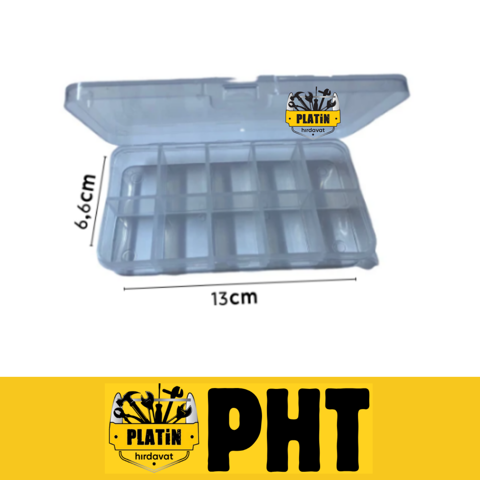 PHT Platin Hırdavat Organizer Şeffaf Kutu Hobby, Takı, Boncuk, 10 Bölmeli ( 13Cm x 6,6Cm ) plt2800010