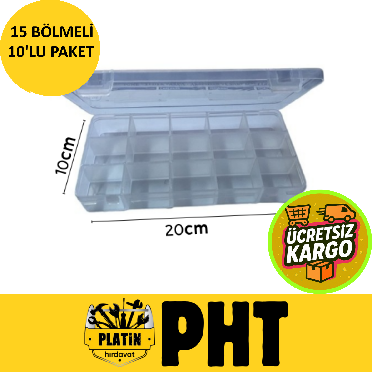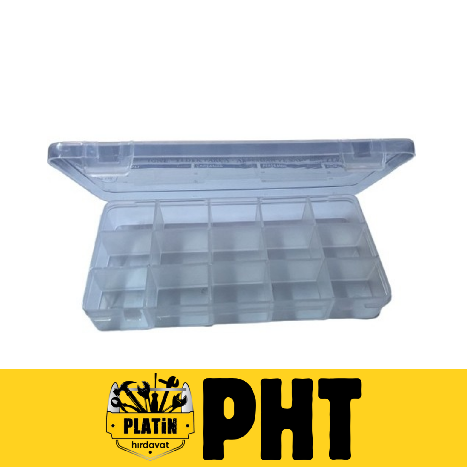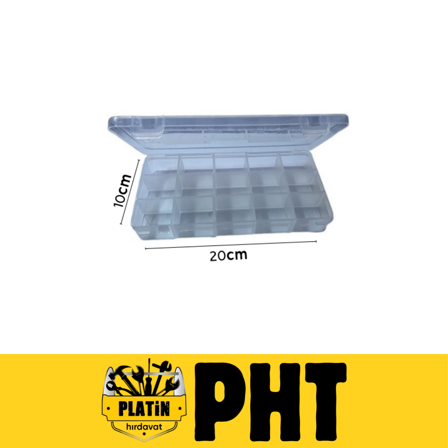 PHT Organizer Şeffaf Kutu Hobby, Takı, Boncuk, 15 Bölmeli ( 20Cm x 10Cm ) plt2800015 ( 10 Adet )