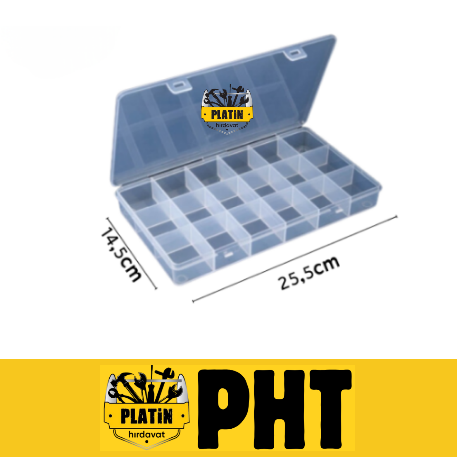 PHT Platin Hırdavat Organizer Şeffaf Kutu Hobby, Takı, Boncuk, 18 Bölmeli ( 25,5Cm x 14,5Cm ) plt2800018
