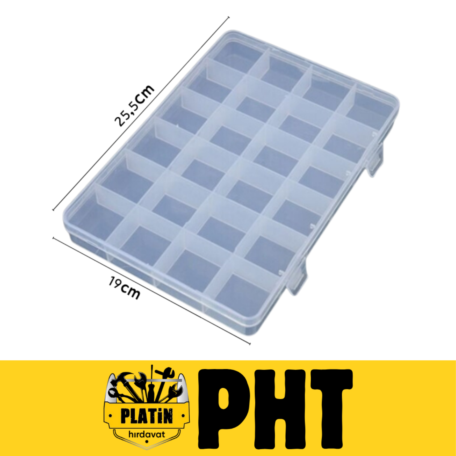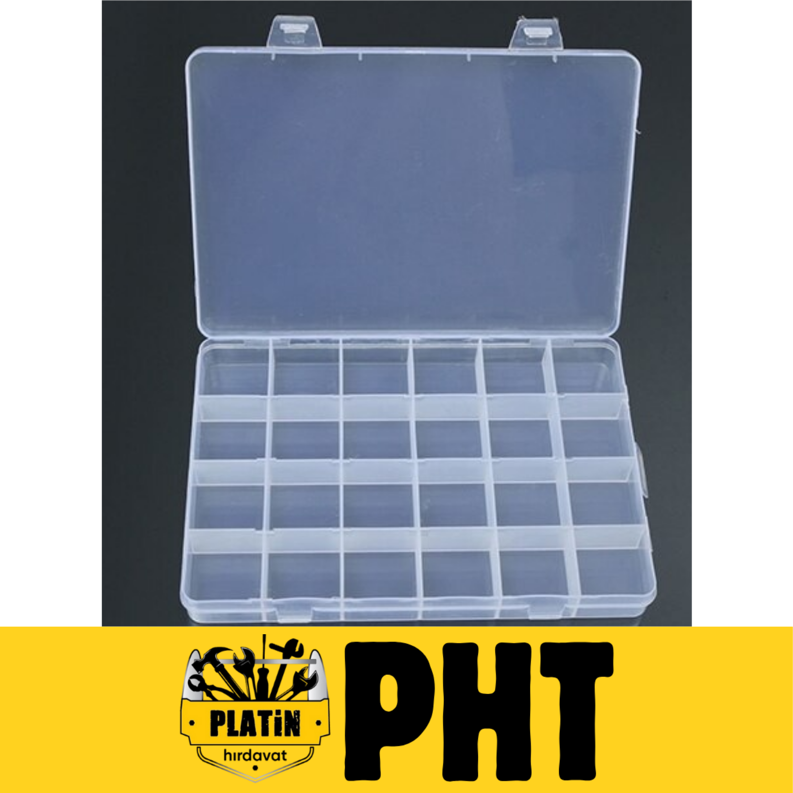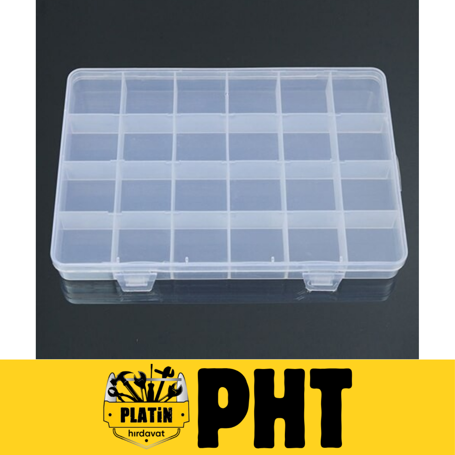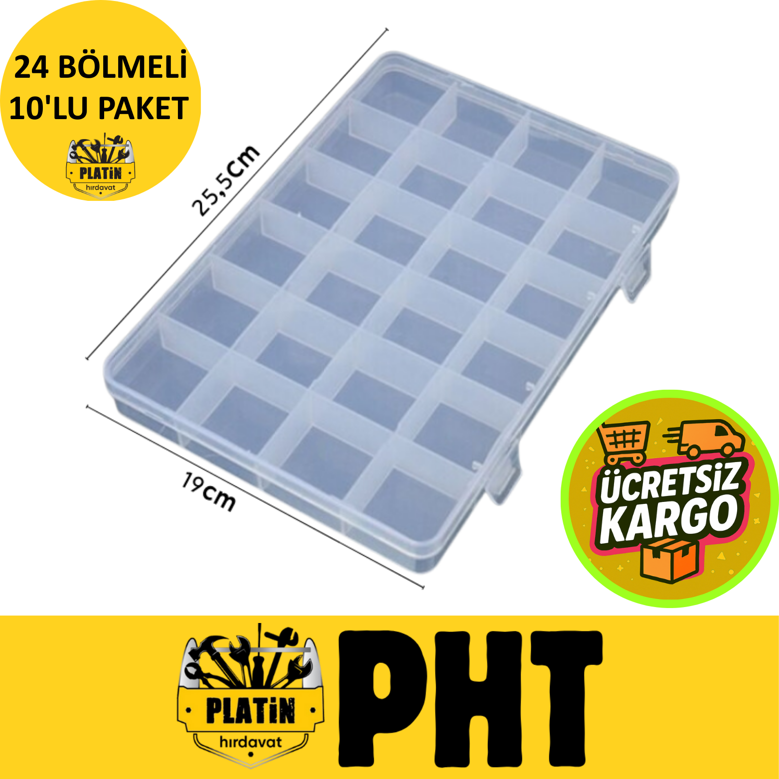PHT Organizer Şeffaf Kutu Hobby, Takı, Boncuk, 24 Bölmeli ( 25,5Cm x 19Cm ) plt2800024 ( 10 Adet )
