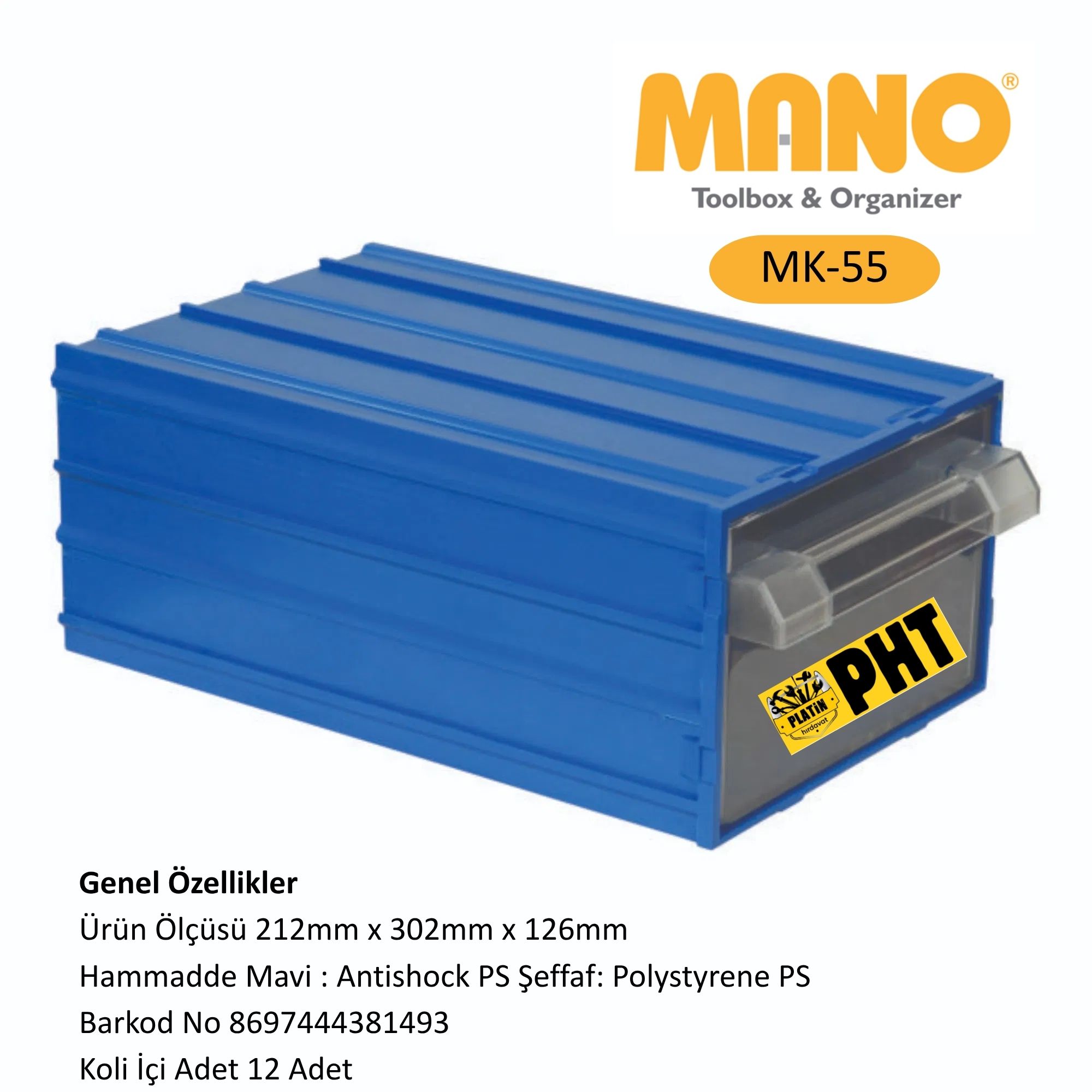 Mano Mavi Çekmeceli Kutu 212x302x126 MM MK-55