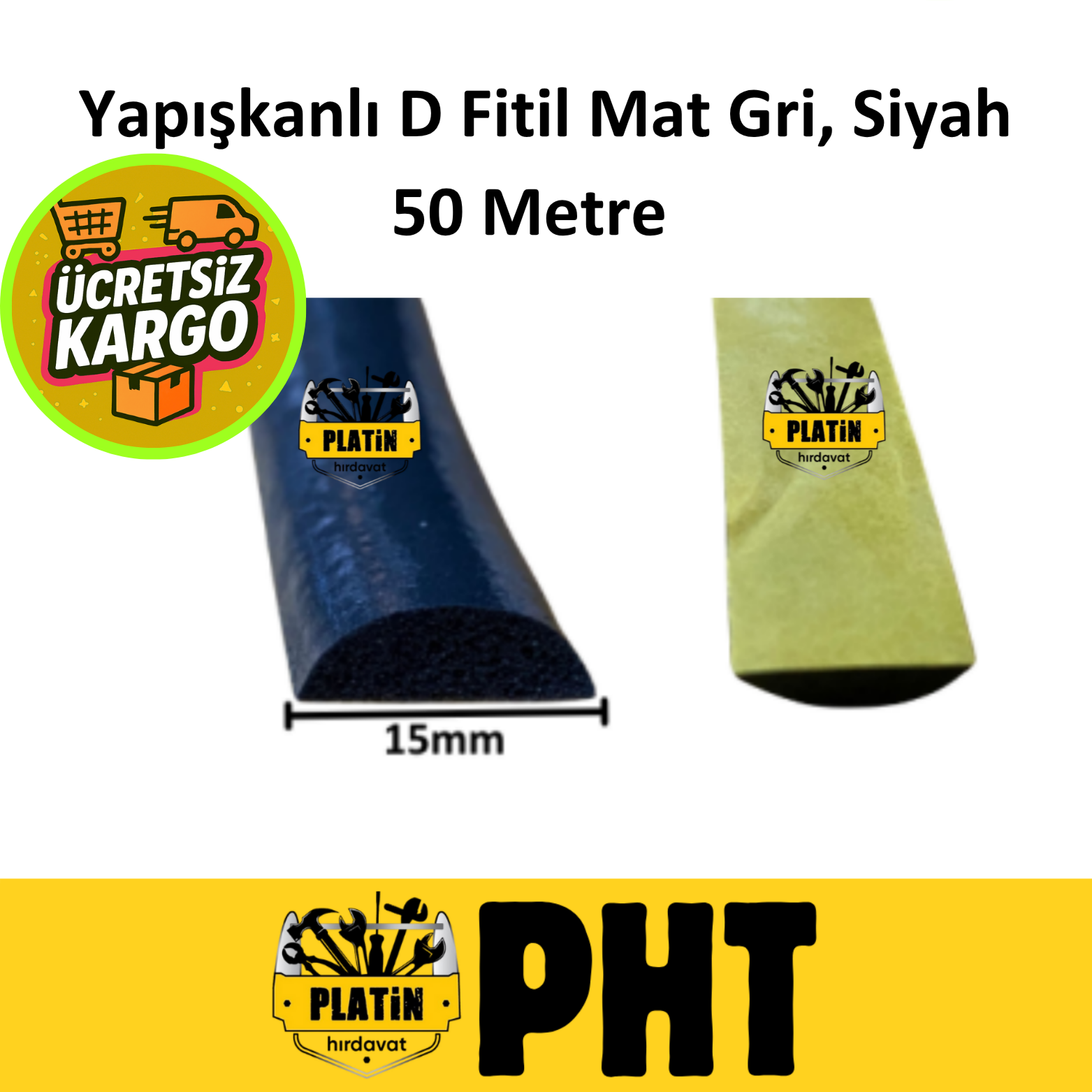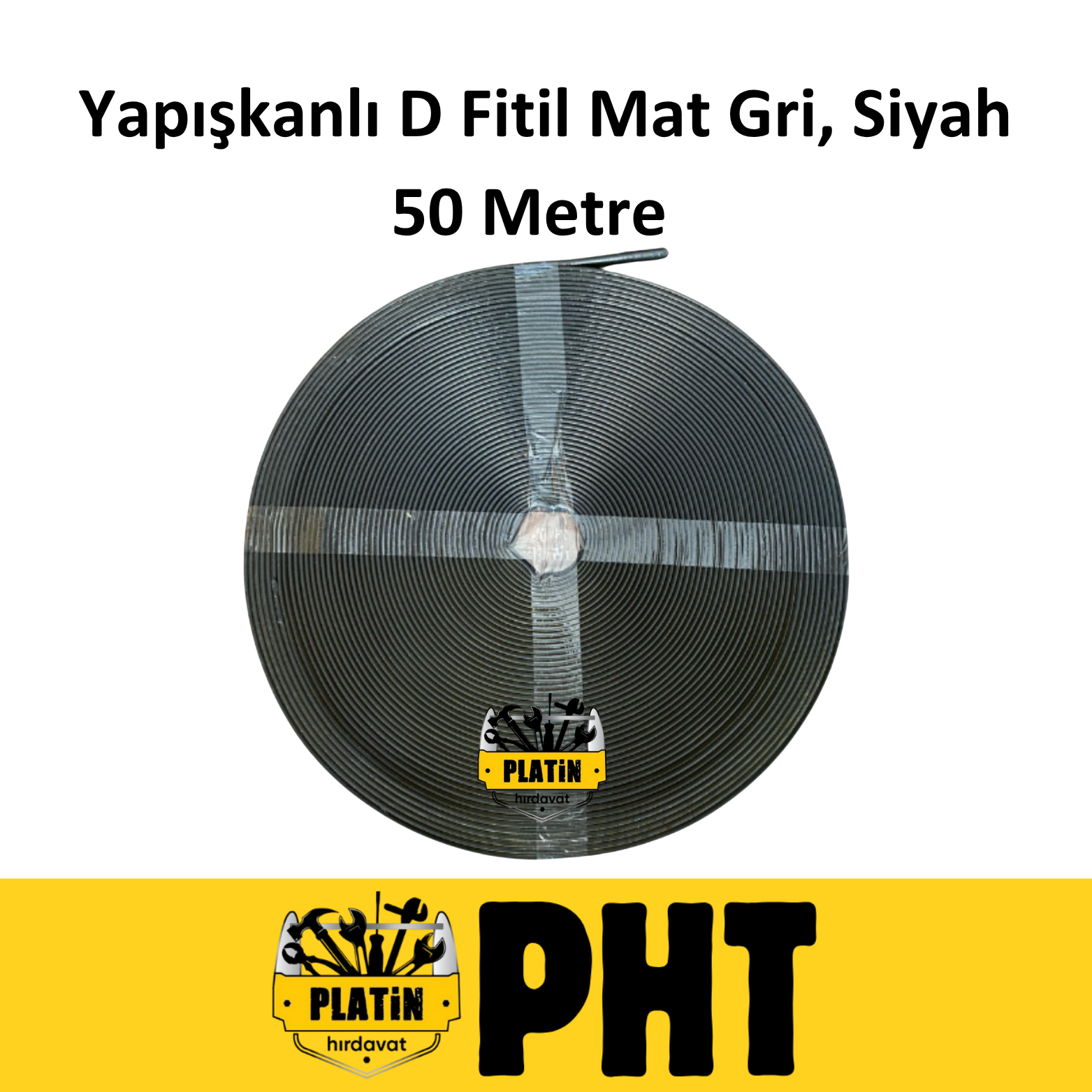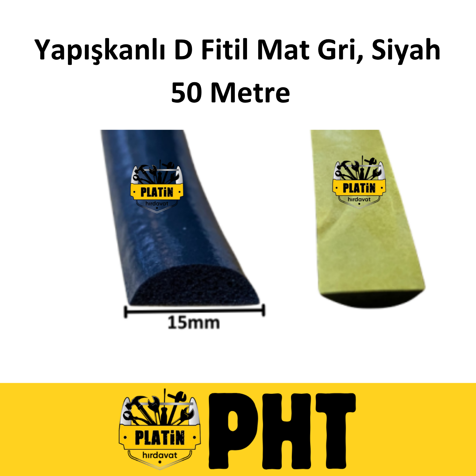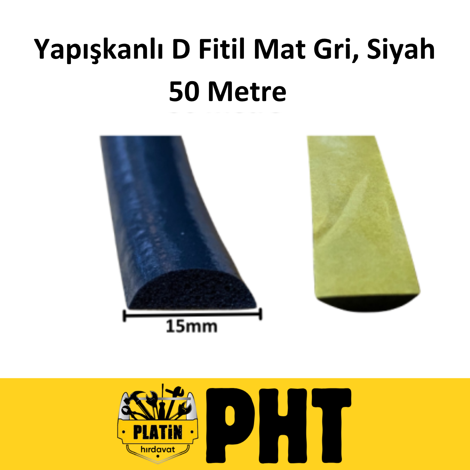 PHT Yapışkanlı D Fitil Mat Gri, Siyah 15mm 50 Metre plt2800080