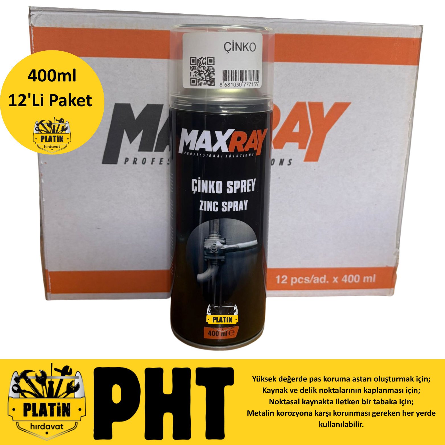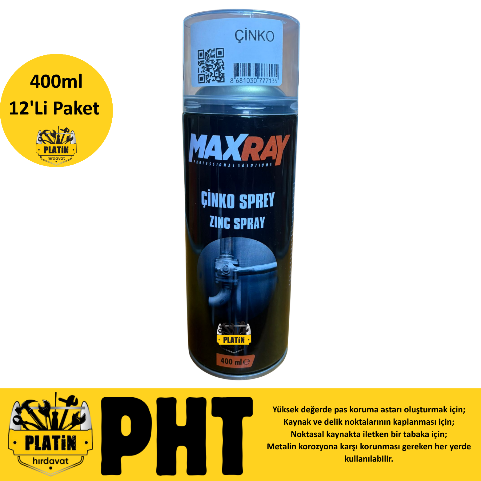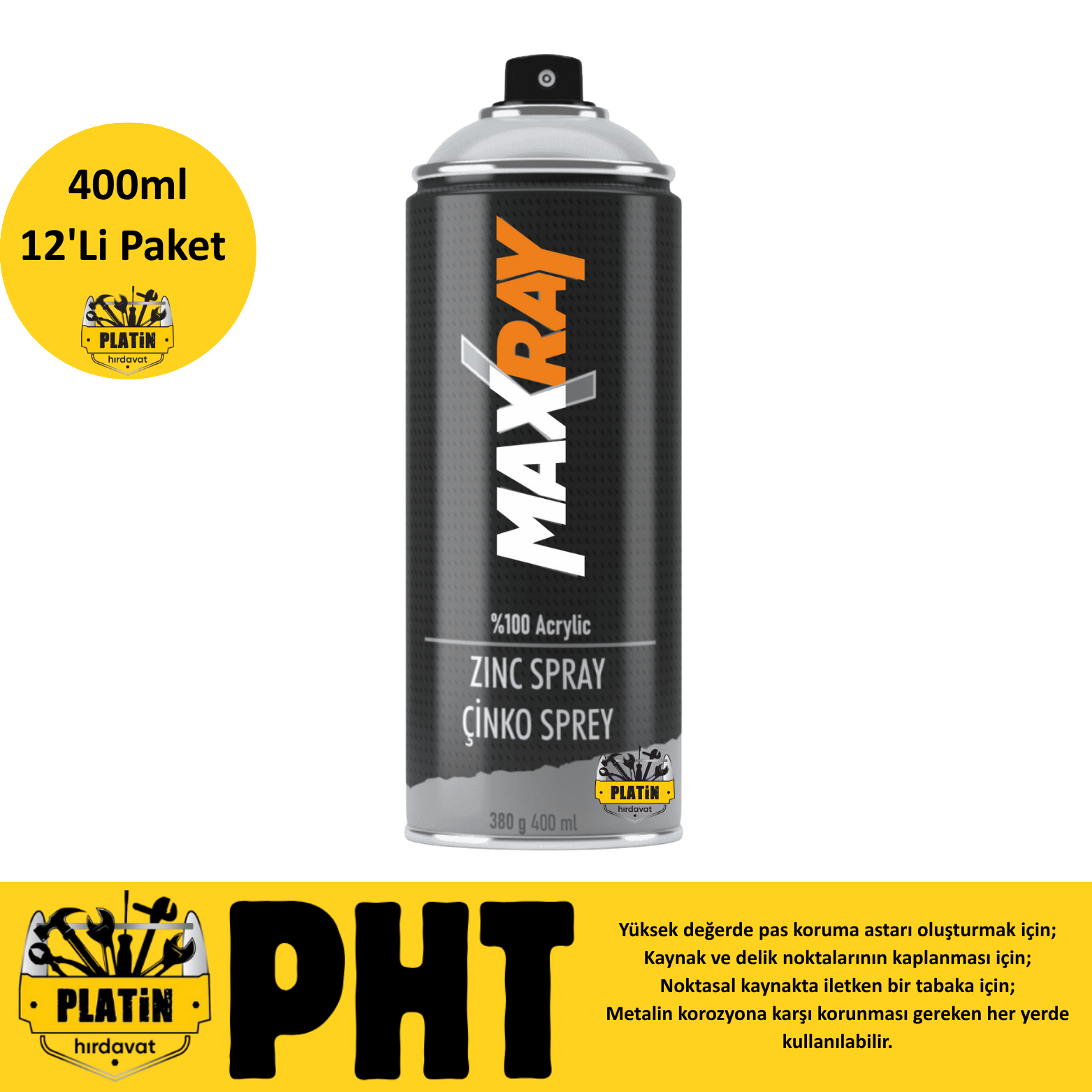 Maxray Çinko Sprey Galvaniz Zınc Sprey 400ml 12 Adet plt28000501