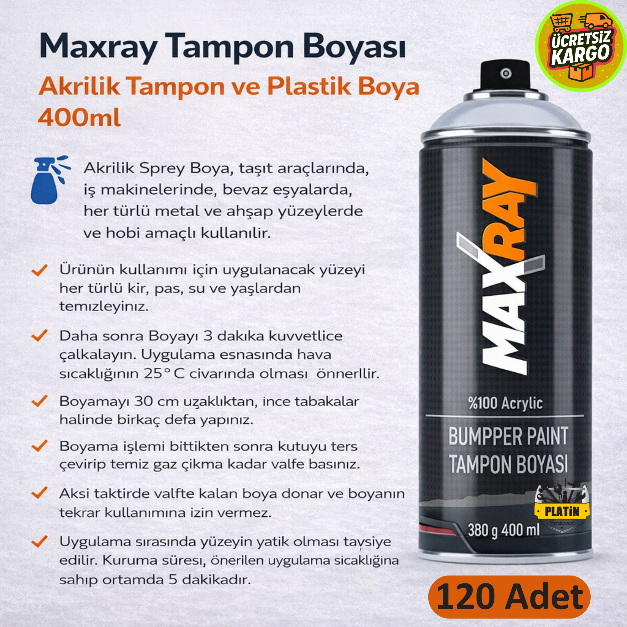 Maxray Tampon Boyası Ral-9005 ( 120 Adet ) PLT28000503