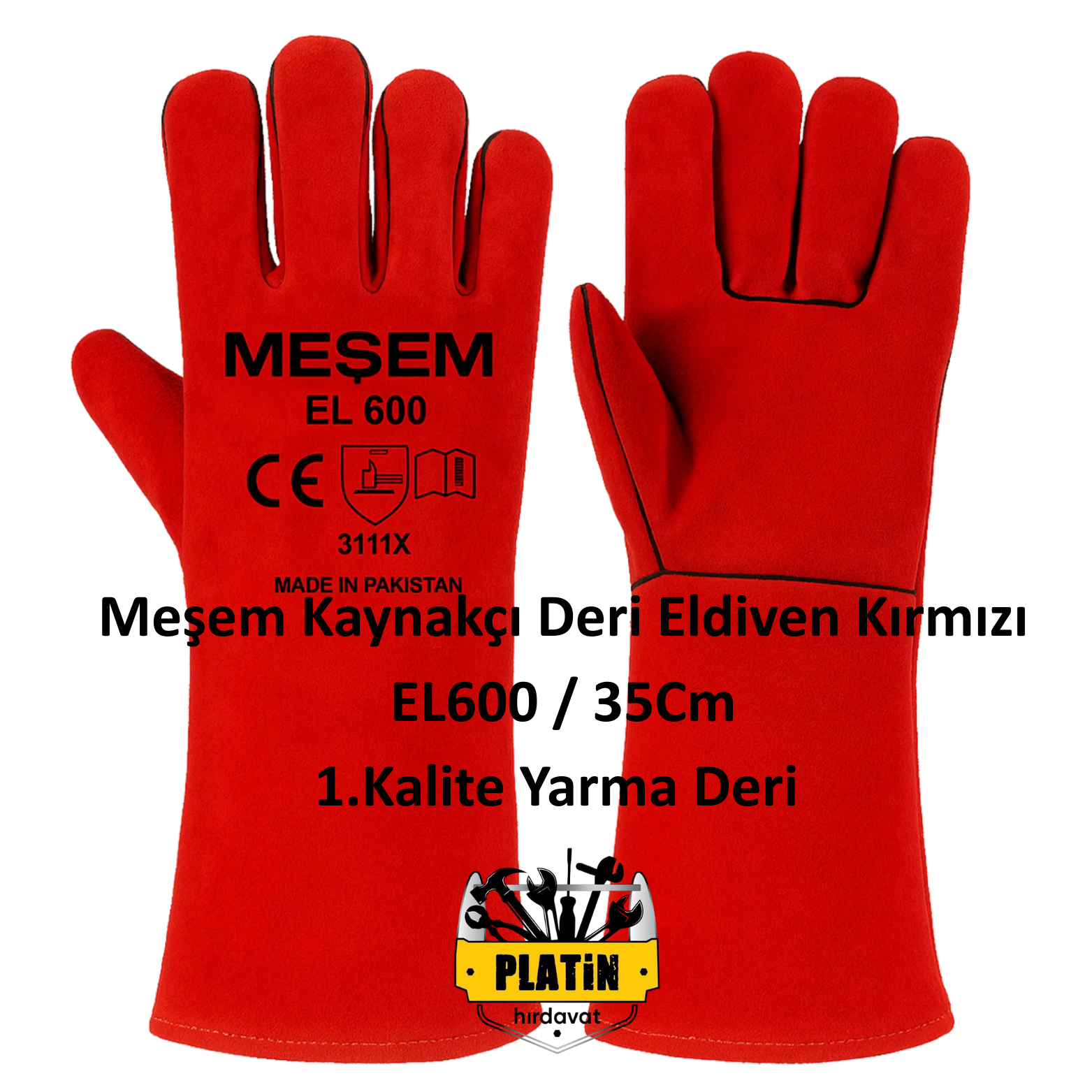 Meşem Kaynakçı Deri Eldiven Kırmızı EL600