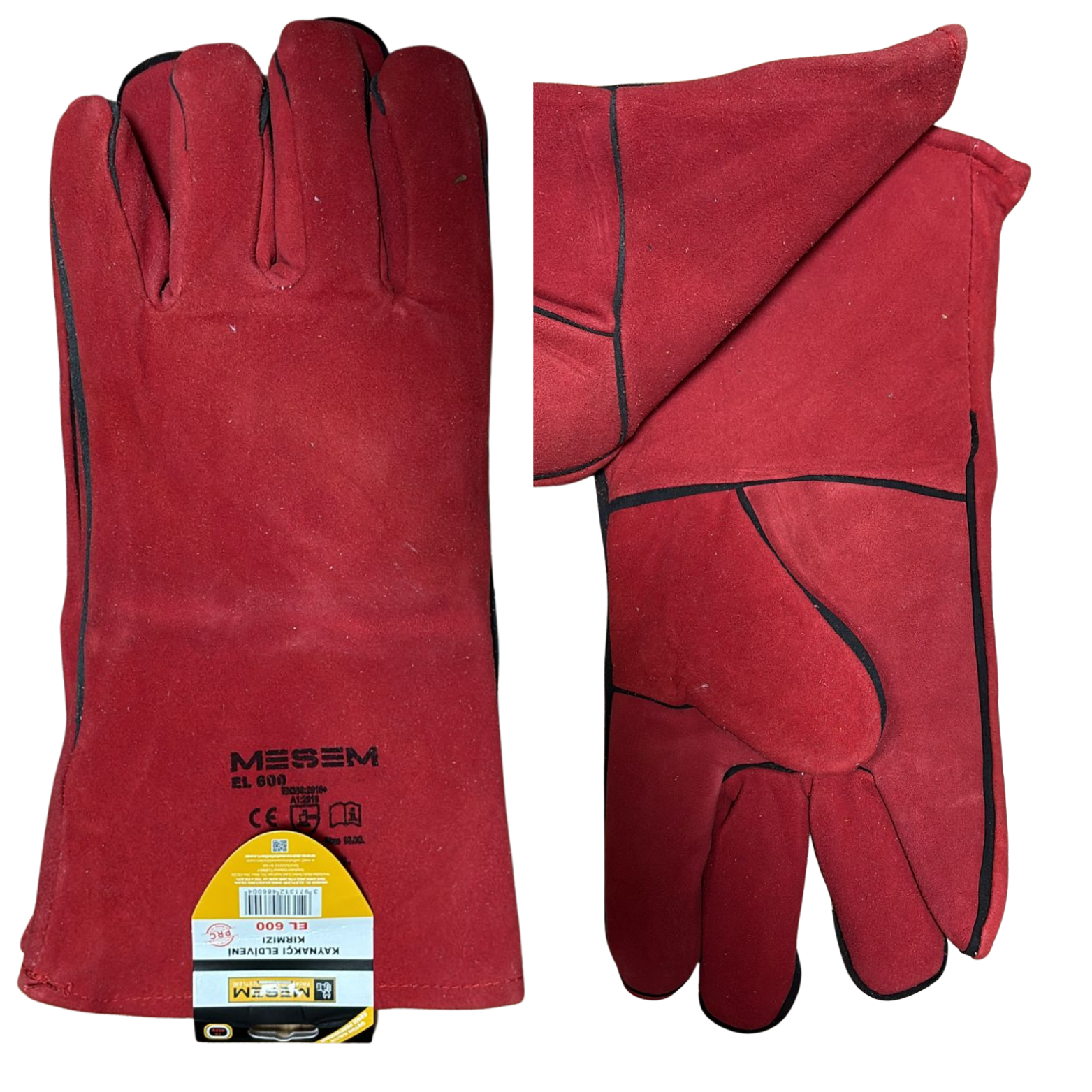Meşem Kaynakçı Deri Eldiven Kırmızı EL600 ( 12 Çift )